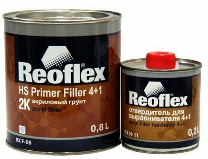 комплект REOFLEX Акриловый грунт Filler Prime HS 4+1 RX F-06 0,8л Серый + Отвердитель для грунта 4+1 RX H-11 0,2л