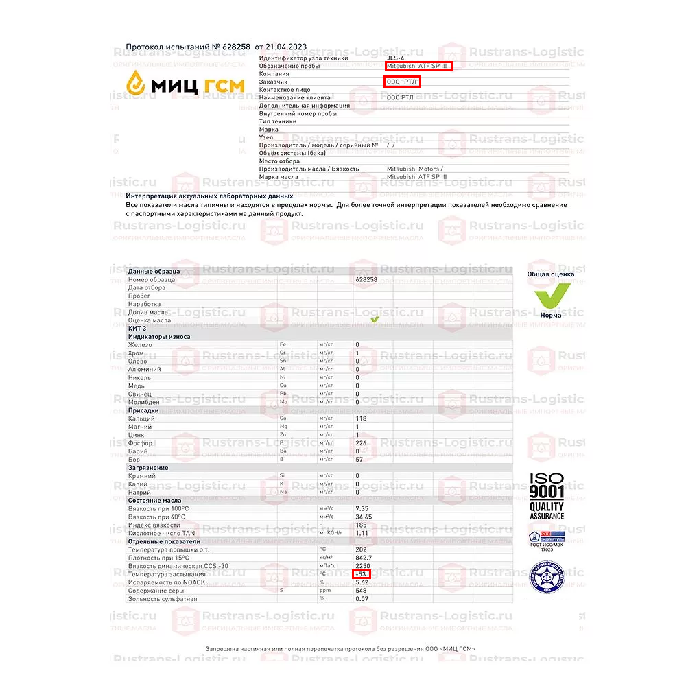 | Допуски OEM | Hyundai/KIA SP-III / Mitsubishi SP-III / Nissan Matic-C / ZF TE-ML 09 |