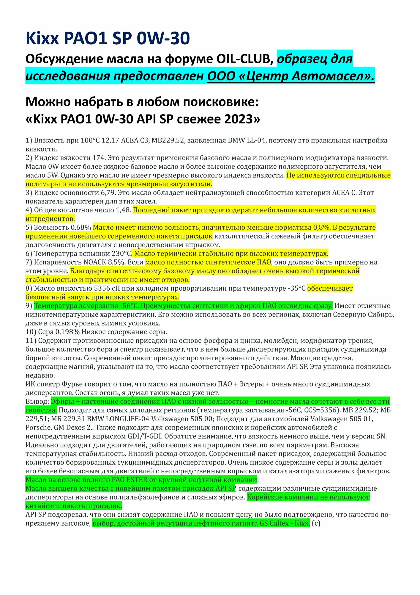 Kixx Kixx Pao1 0W30 Sp 4Л интересное: