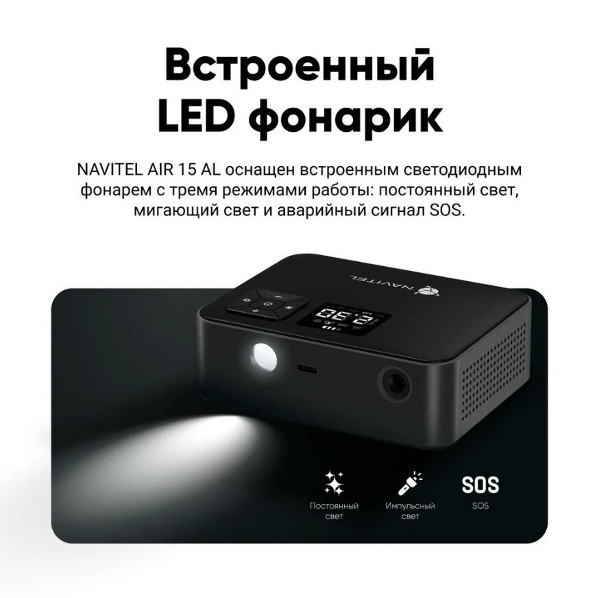 | Подробная комплектация | NAVITEL AIR 15 AL; Кабель USB-C; Воздушный шланг; Адаптер сопла (4 шт.); Чехол для хранения; Руководство пользователя; Гарантийный талон |