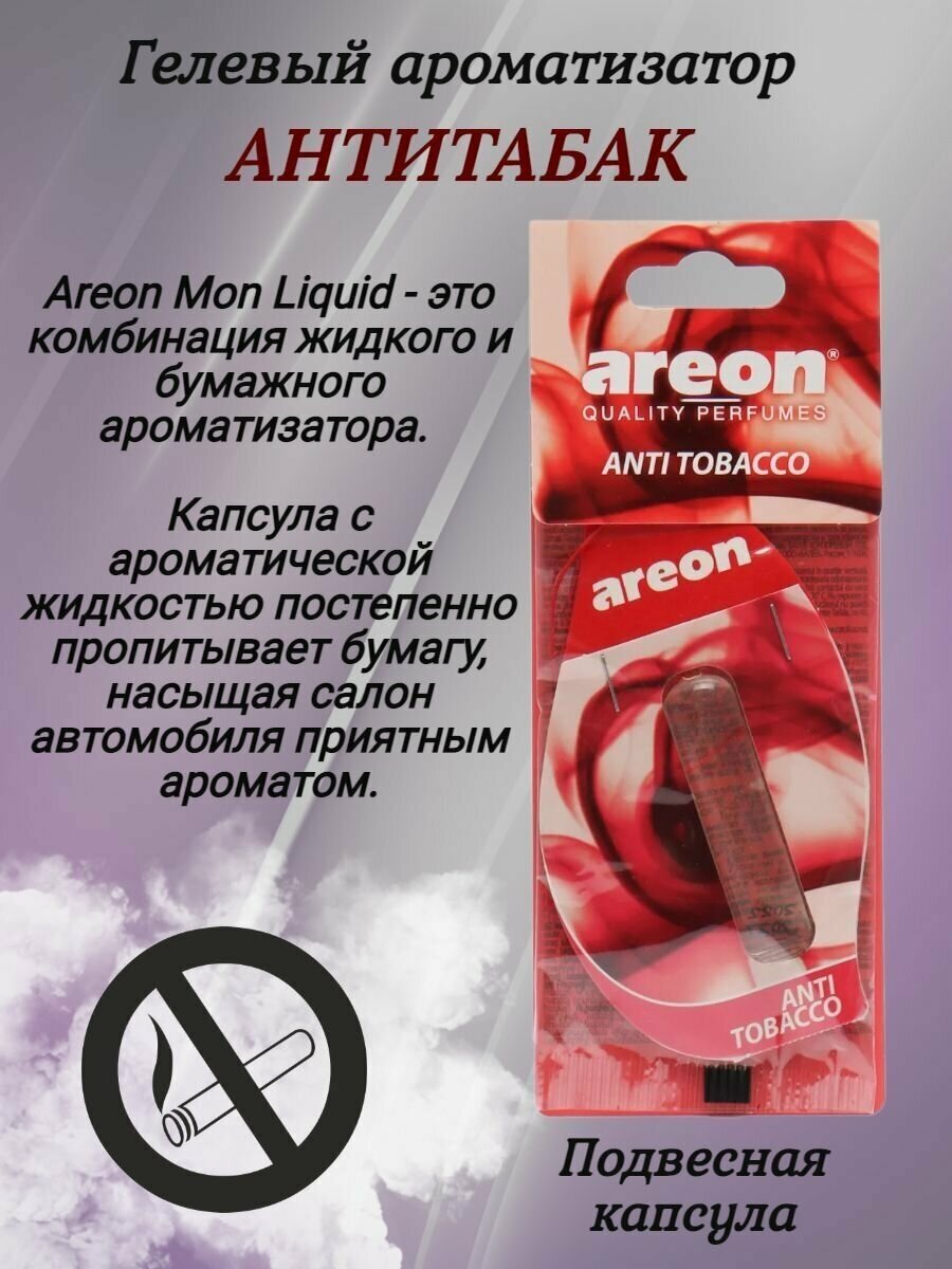 СохранитьАроматизатор - освежитель воздуха AREON LIQUID Anti Tobacco(Анти табак) жидкий 5ML. Подвесной - на верёвке. На зеракло интересное: