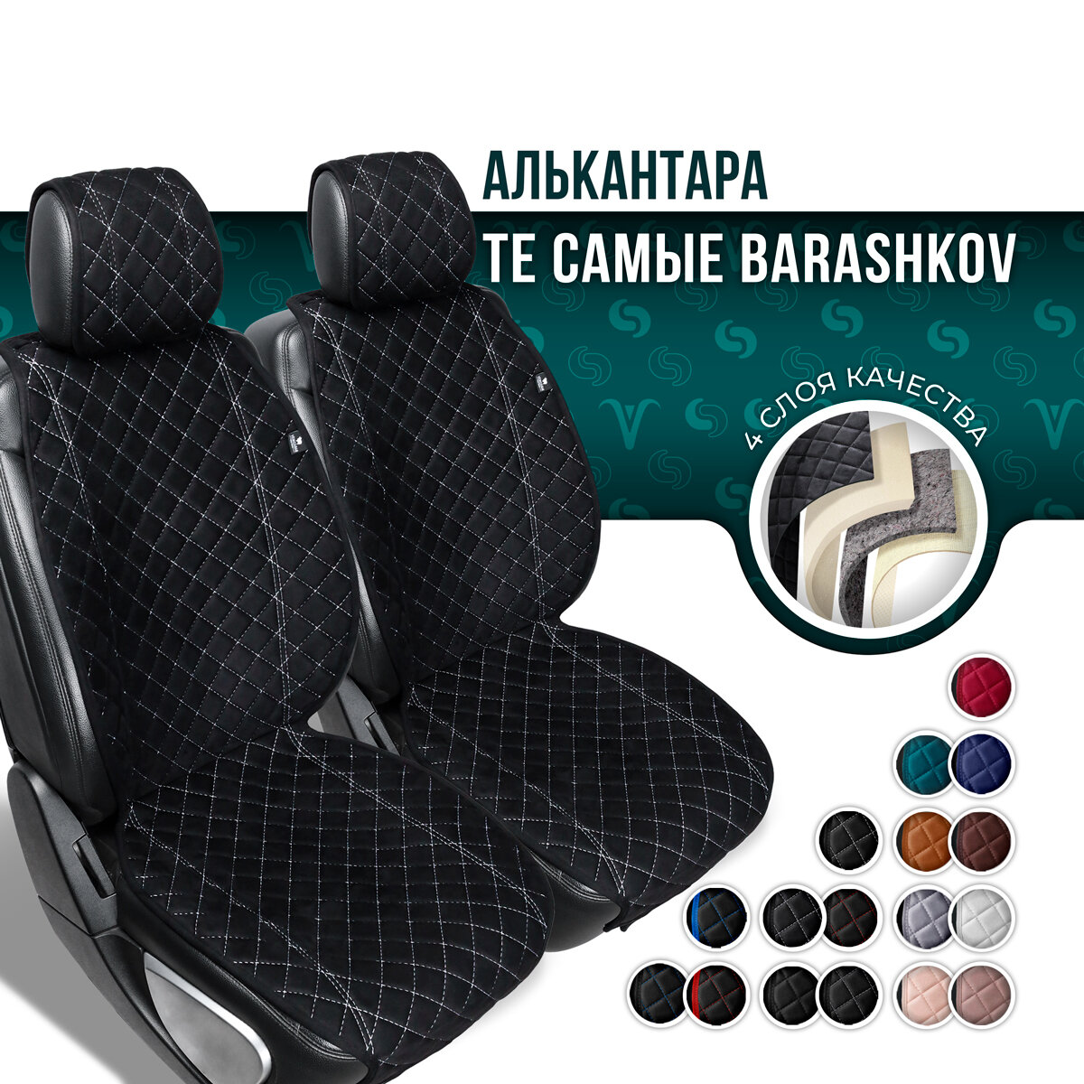 СохранитьНакидки на сиденья автомобиля из алькантары 2 шт. Модель L.Черный, белая строчка интересное: