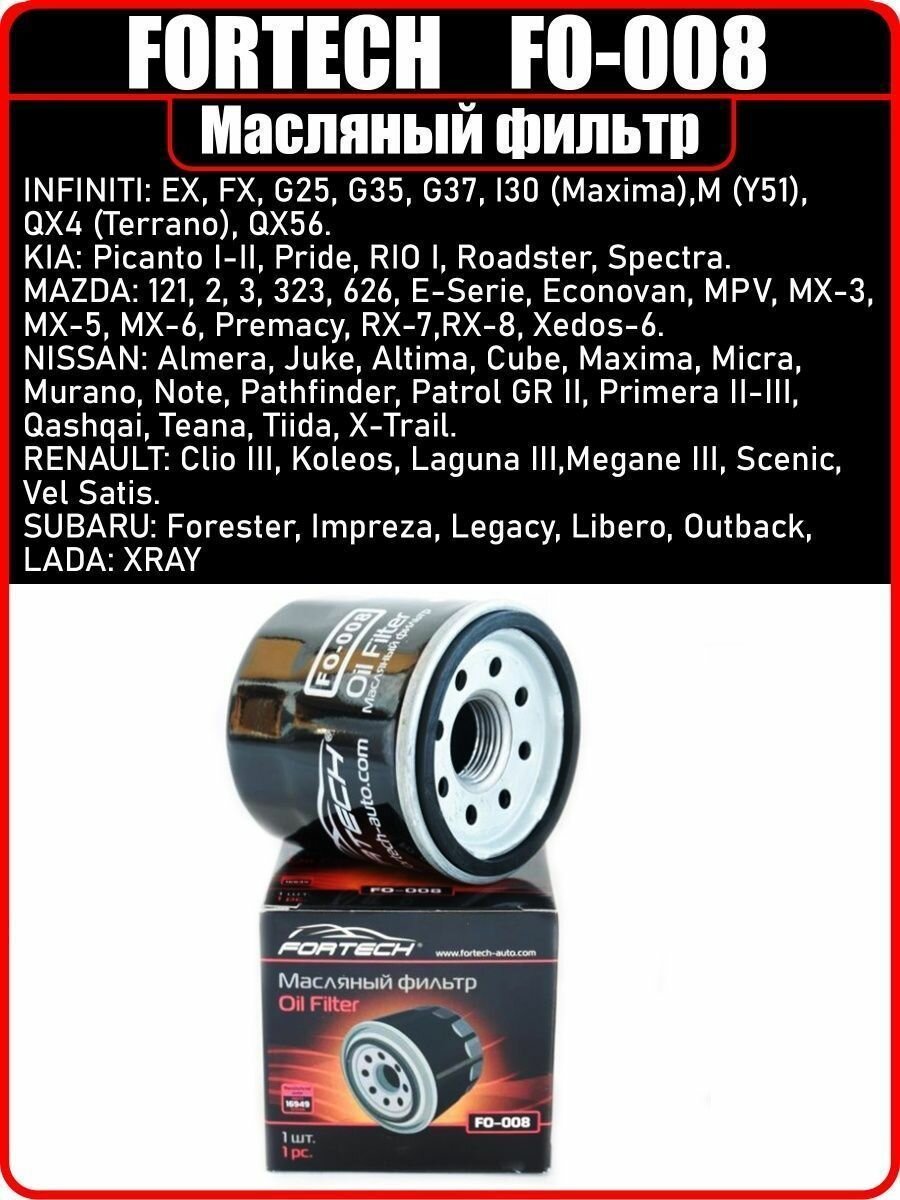 Фильтр масляный FO008 Fortech для Hyundai Getz, Solaris, SUBARU Legacy / Фортеч для Хендай Гетс, Солярис, Субару Легаси интересное: