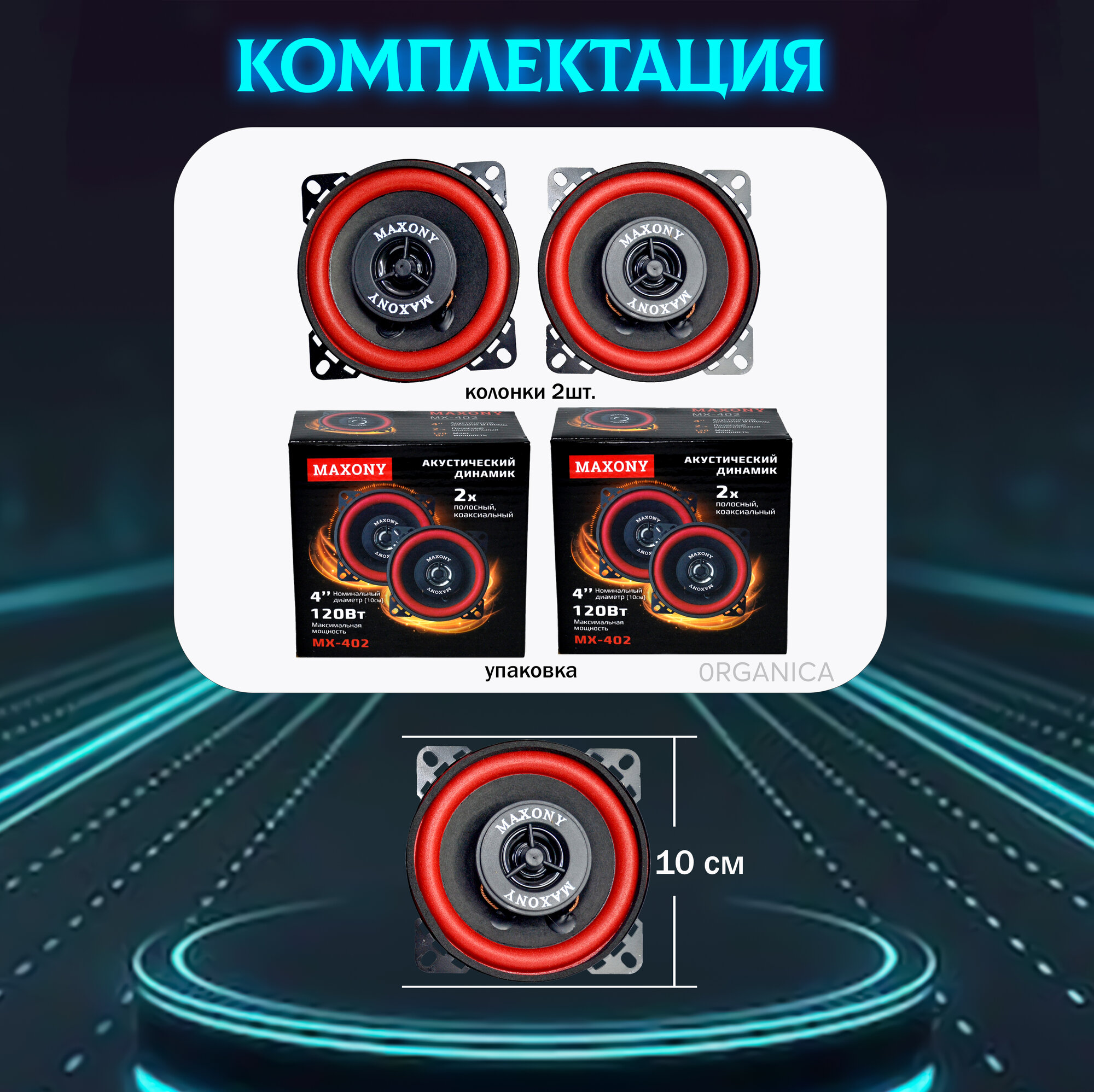 Колонки Автомобильные 120Вт, 10см, 90дБ, 4Ом