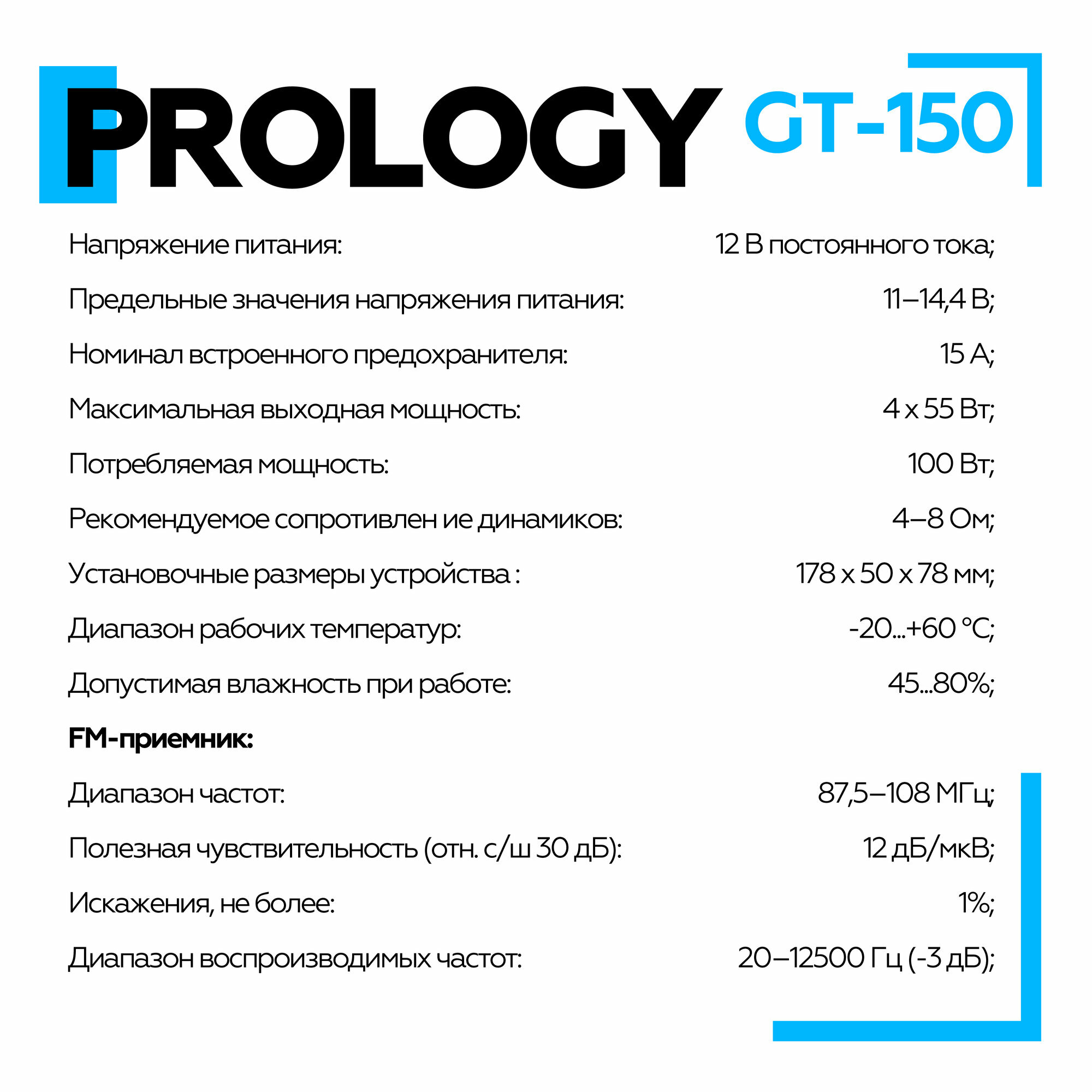Автомагнитола Prology GT-150 FM/SD/USB/BT ресивер интересное: