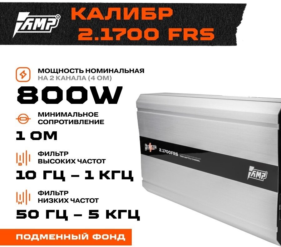 Усилитель AMP Калибр - 2х1700 Вт, с защитой от перегрузок, мостом и режимом усиления баса интересное: