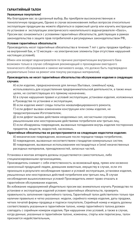 Водонагреватель накопительный Oasis AS-100 . интересное: