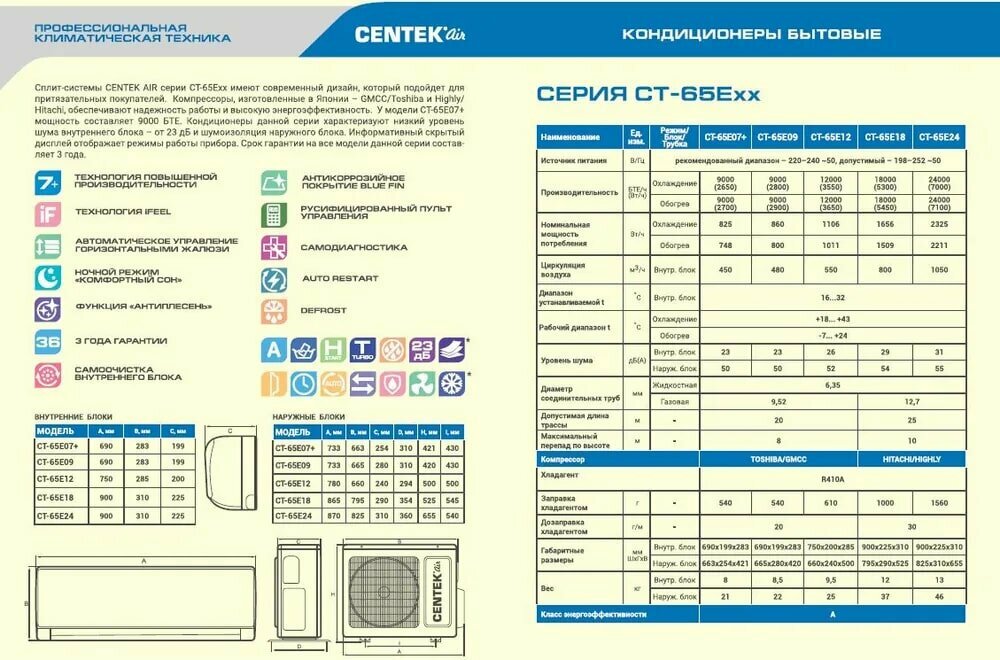 Ниже Вы можете прочитать отзывы на Сплит-система инверторная Centek CT-65EDC07 EDC series, белый, ознакомится с подробными характеристиками, посмотреть интересные обзоры и фотографии на Сплит-система инверторная Centek CT-65EDC07 EDC series, белый.