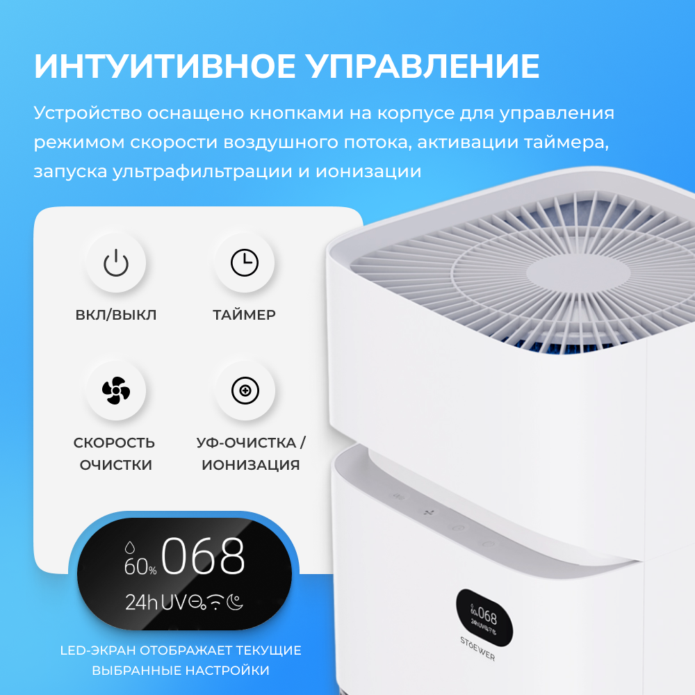 Умный климатический комплекс STOEWER штоер Air Wash X12 очиститель-увлажнитель воздуха, бесшумный, для аллергиков интересное:
