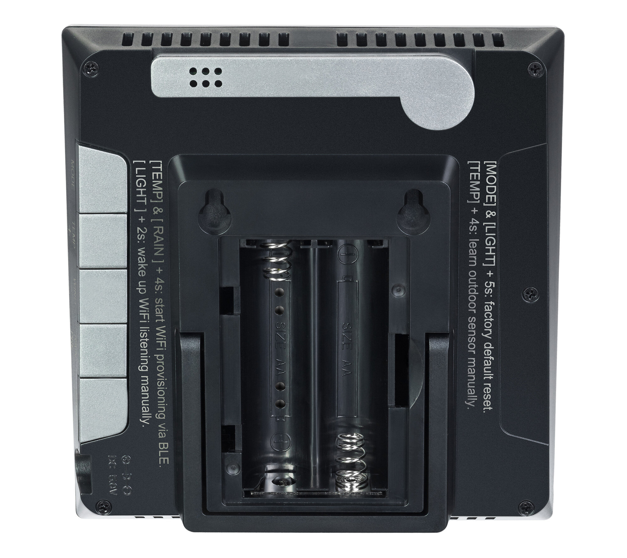 | Дополнительная информация | Wi-Fi стандарта 802.11 b/g/n, частота 2,4 ГГц, синхронизация с Time Server, с погодными серверами Weather Underground и Weather Cloud, точка росы, тепловой индекс, предупреждение об обледенении, UV-индекс (0–15), уровень освещенности (0–200 клк), солнечная панель |