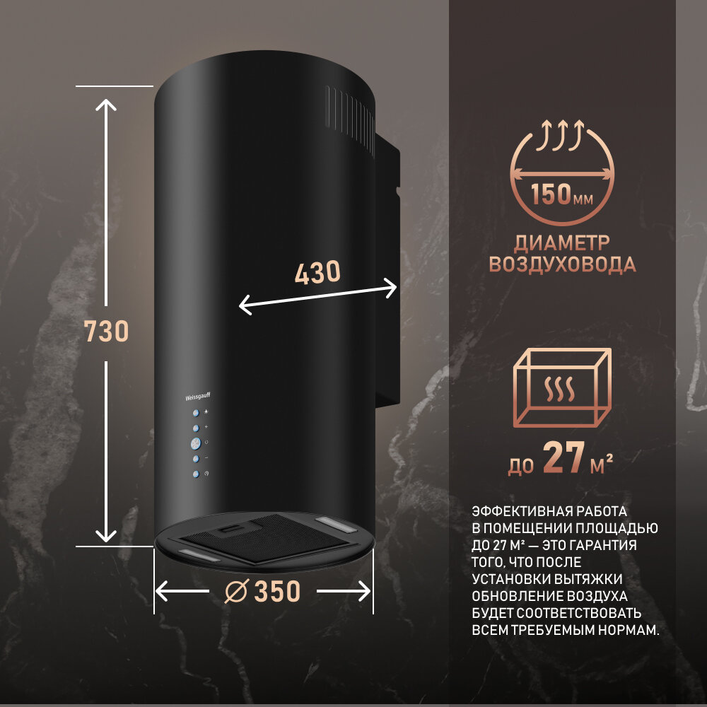 Купить Вытяжка цилиндрическая пристенная Weissgauff Gracia 70 BL, Низкий уровень шума