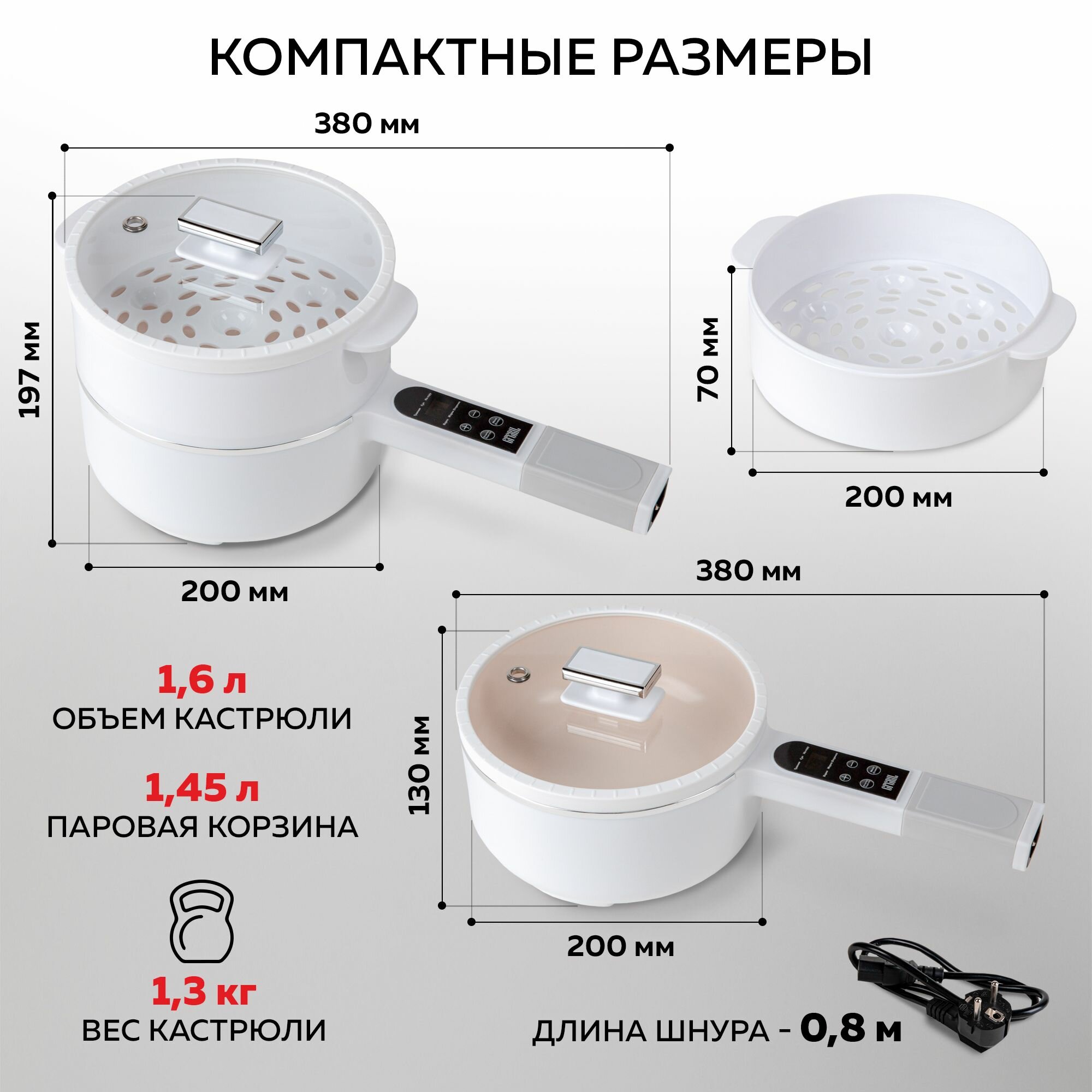 GFGRIL Электрическая кастрюля ковшик GFP-50: миниварка/пароварка/суповарка/яйцеварка/стерилизатор/электросковорода