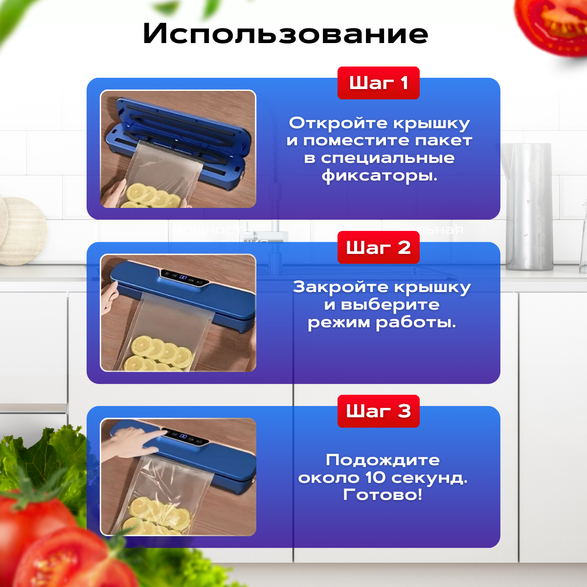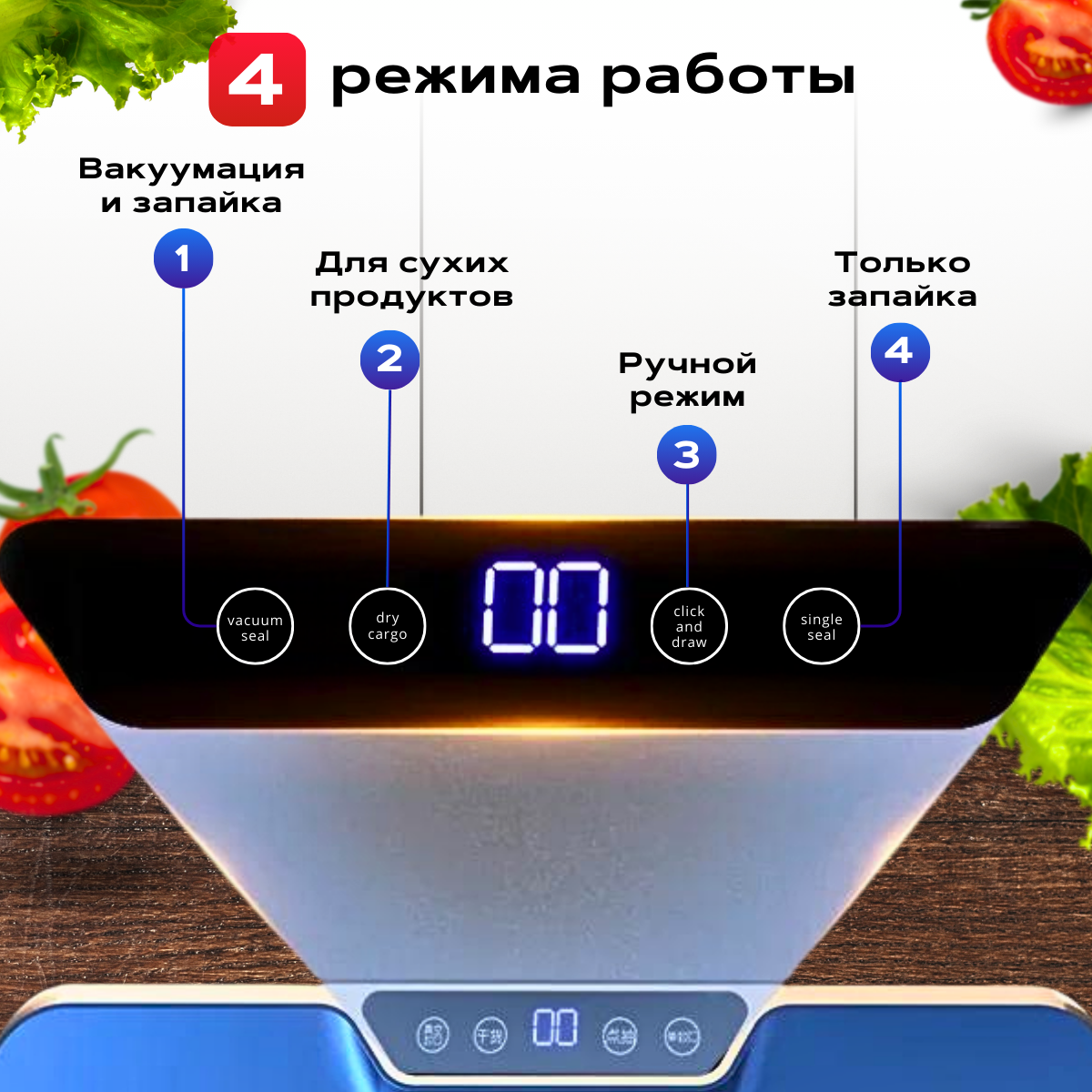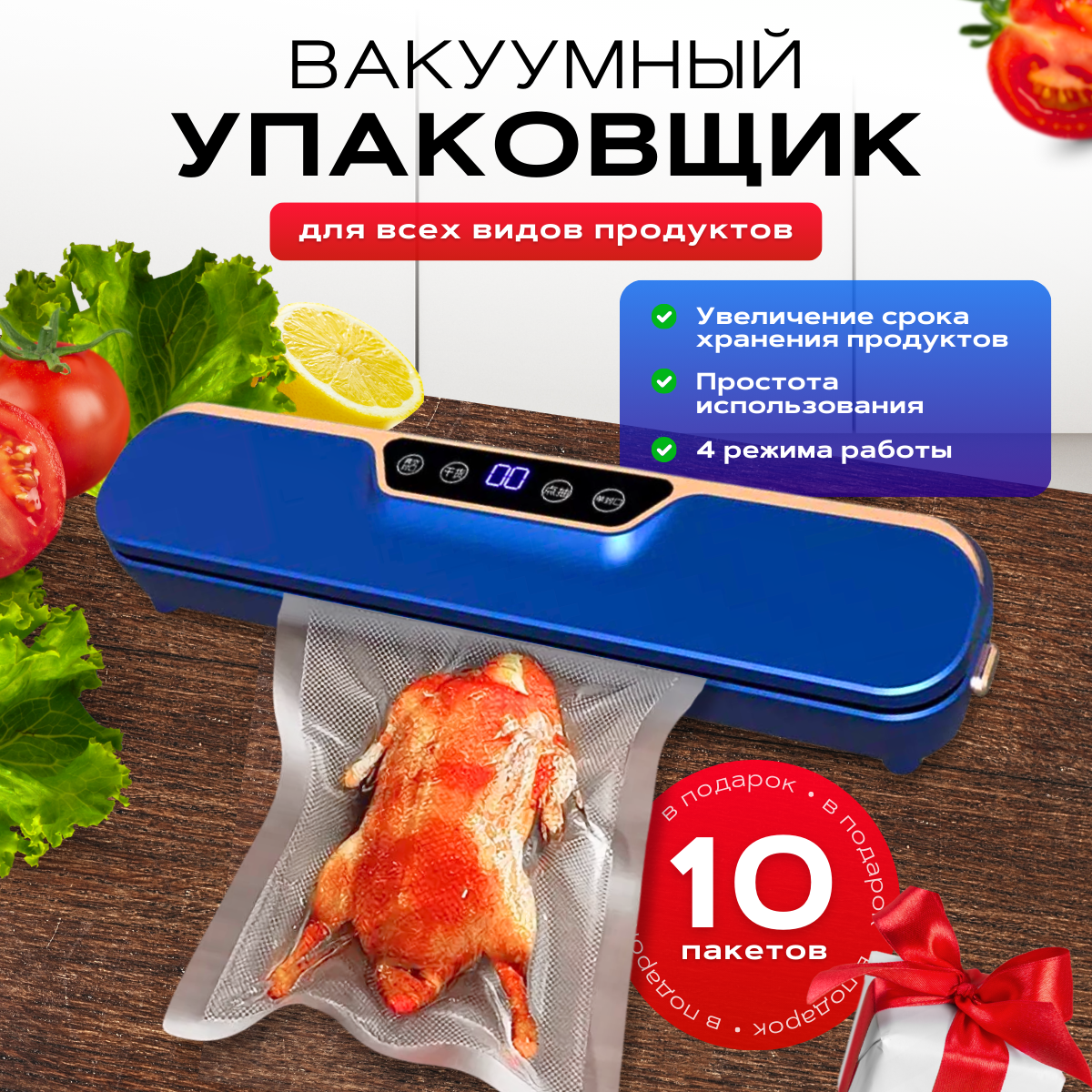 Вакуумный упаковщик для продуктов, Вакууматор для продуктов, Режимов - 4, Пакетов - 10 шт. интересное: