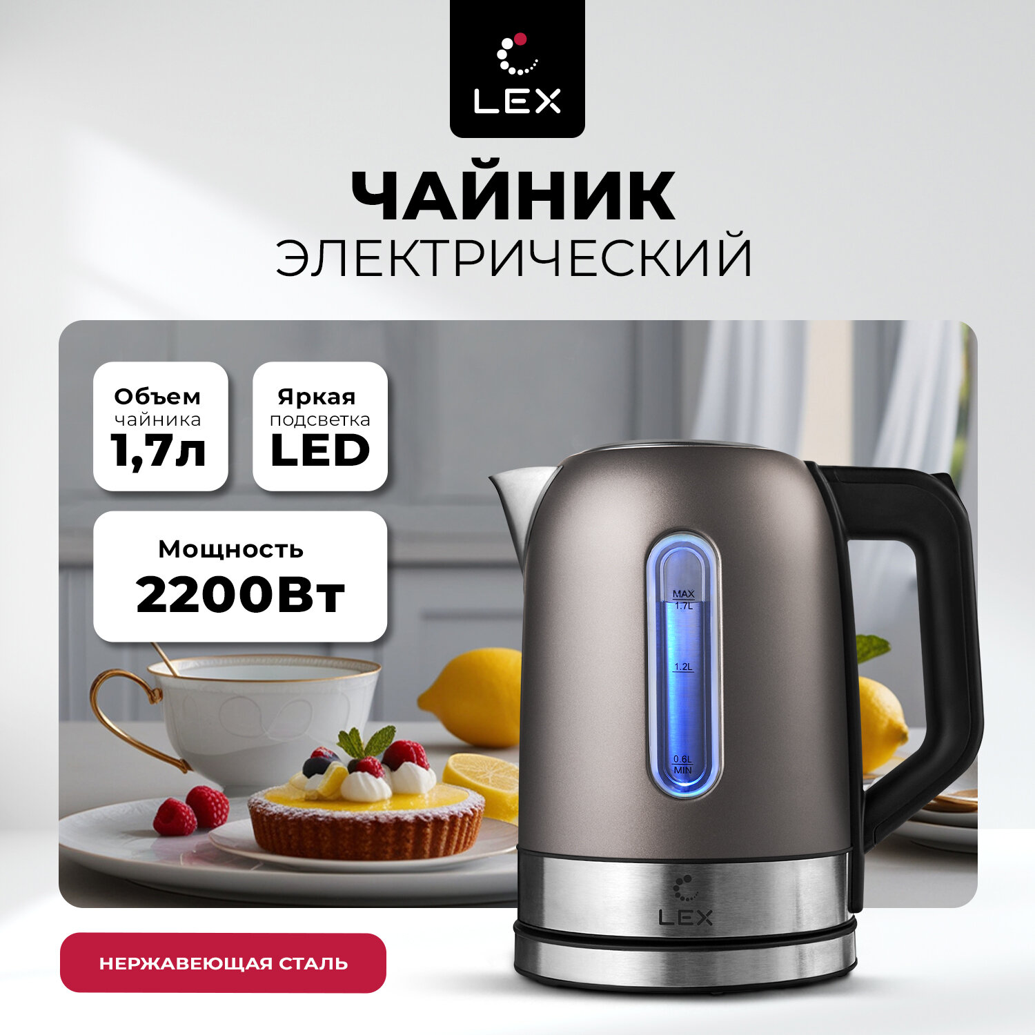 Чайник lex lx 30018-1 2200вт 1,7л металл серебристый