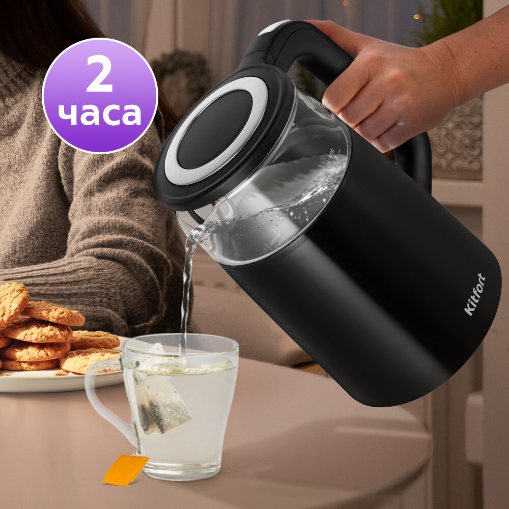 Чайник электрический KitFort КТ-6611, 2200Вт, черный и серебристый интересное: