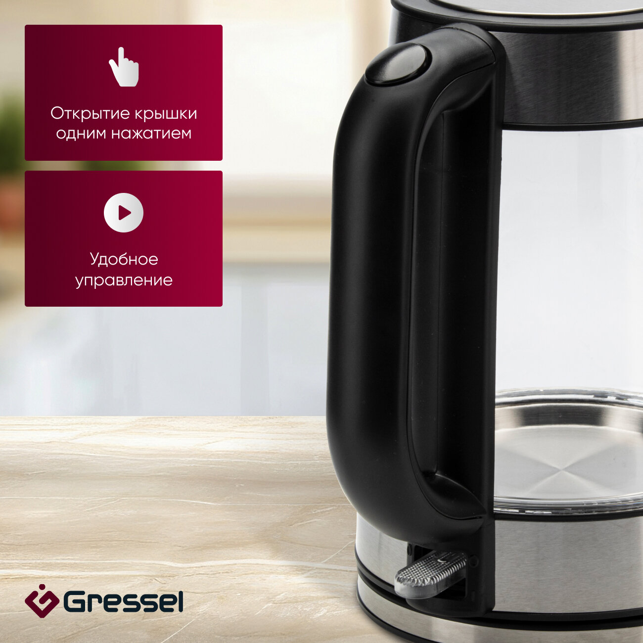 Купить Чайник электрический Gressel GRK-1107 стеклянный с подсветкой, 1.7л, STRIX-контроллер