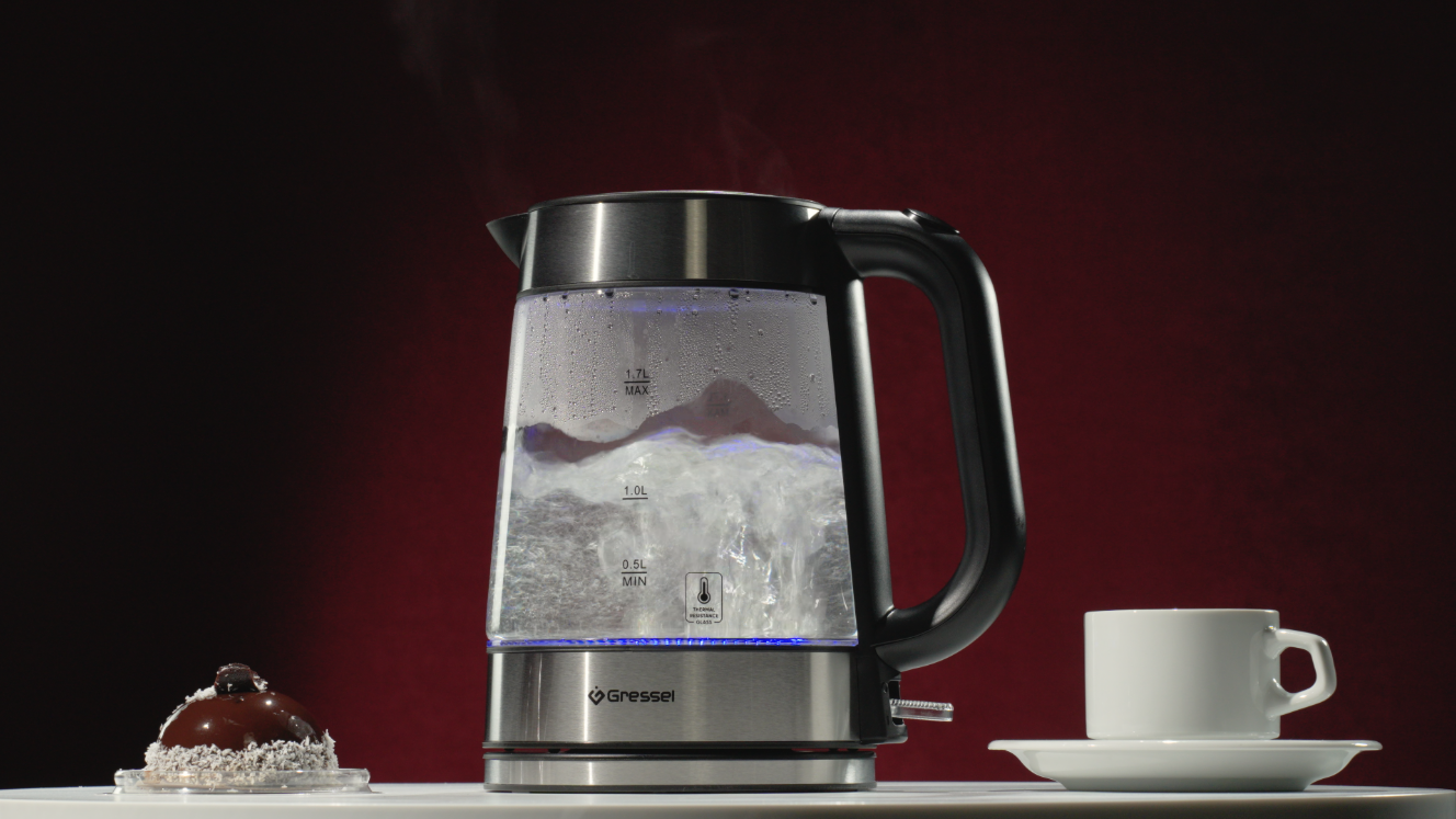 Чайник электрический Gressel GRK-1107 стеклянный с подсветкой, 1.7л, STRIX-контроллер интересное: