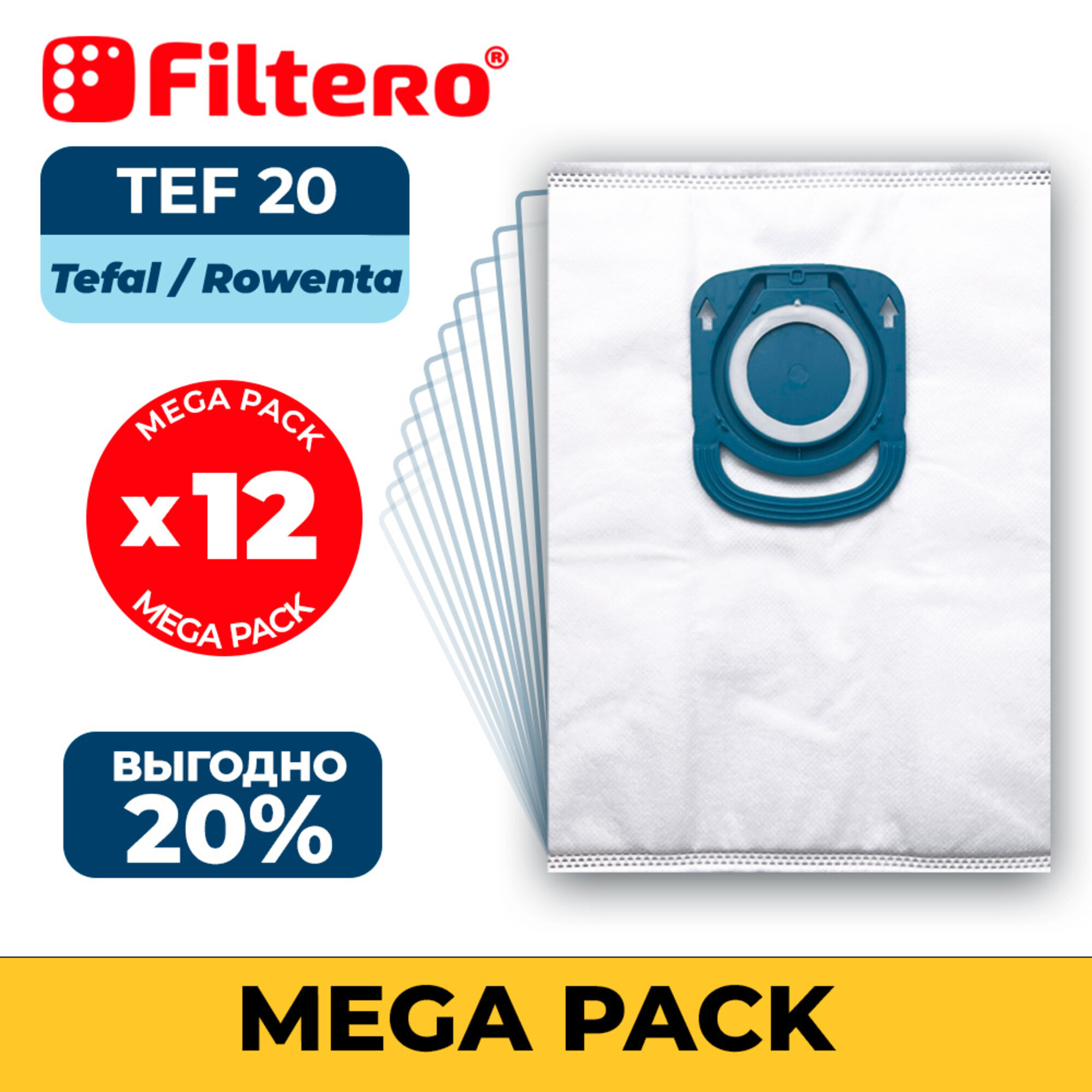 Купить Мешки-пылесборники Filtero TEF 20 Mega Pack экстра для пылесосов Tefal, Rowenta, синтетические, 12 штук