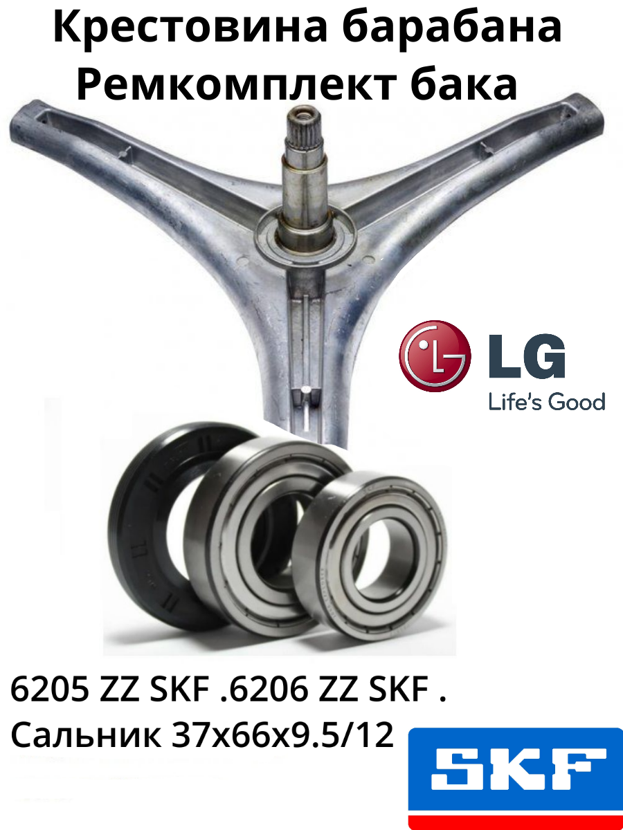 Купить Ремкомплект.Крестовина LG 4434ER1004A+смазка HIDRA-2 2гр.+болты крепления 3 шт.+подшипники SKF 6205 ZZ+6206 ZZ+сальник 37х66х9,5/12 NQK.