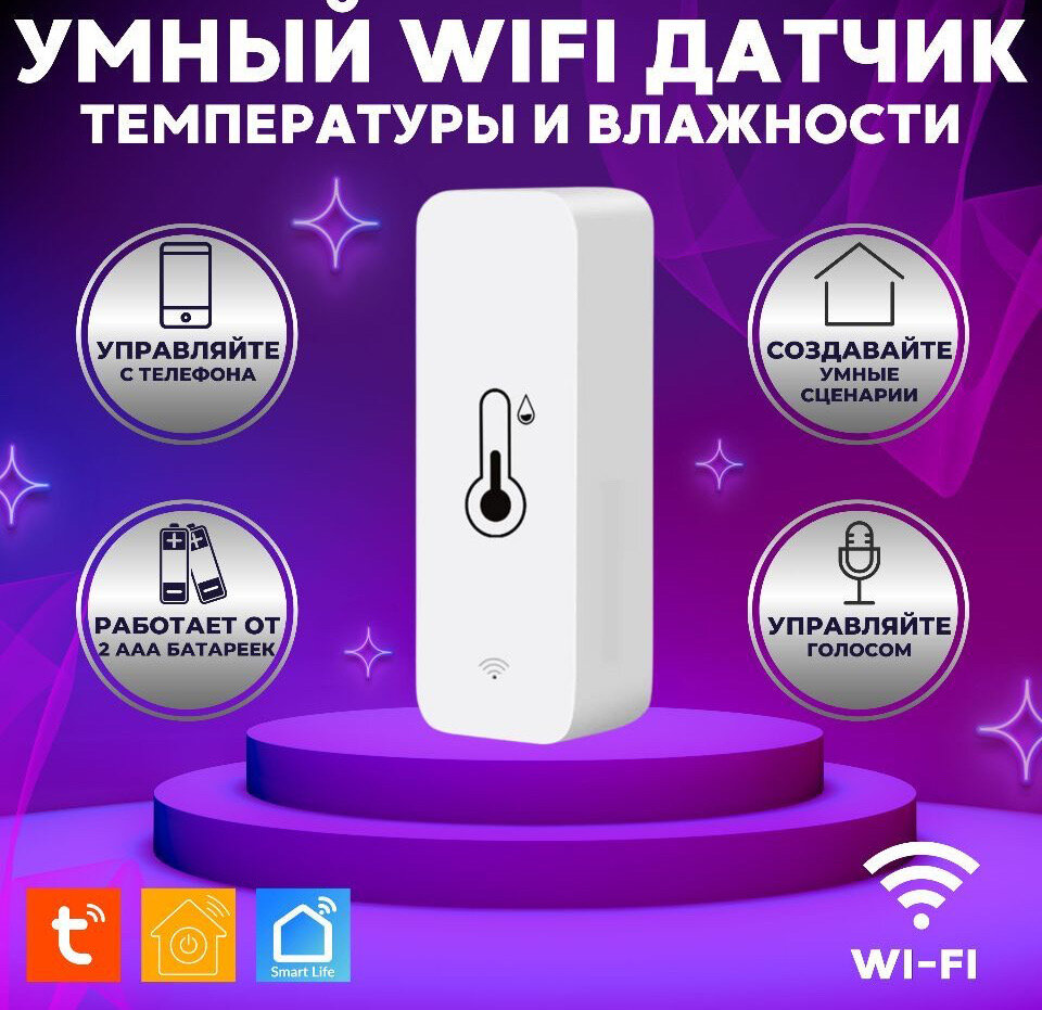 Купить Умный датчик температуры и влажности Tuya (Wi-Fi).С батарейками