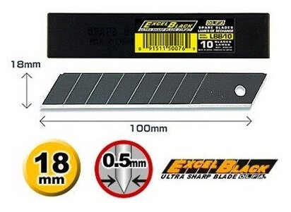 Лезвие для канцелярских ножей (Олфа)OLFA BLACK MAX 18мм, 10шт. в упаковке интересное: