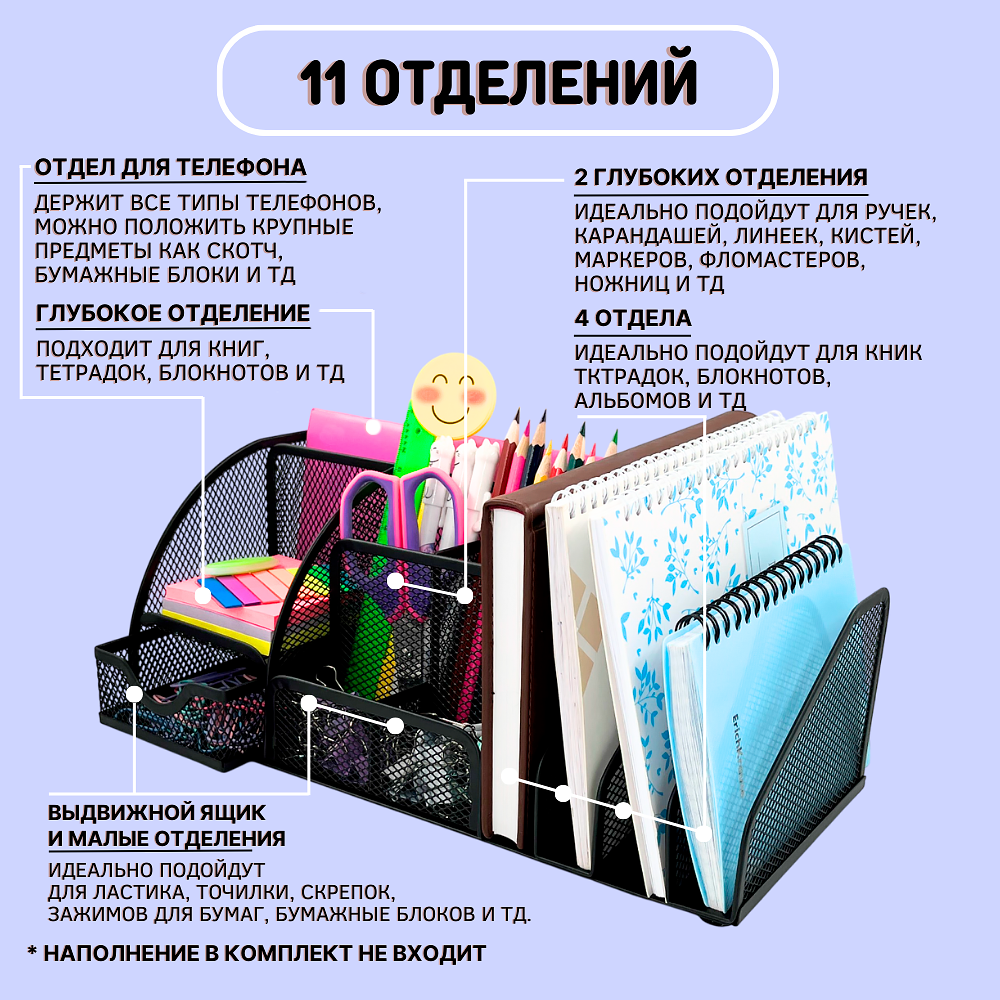Ниже Вы можете прочитать отзывы на Органайзер подставка для канцелярии и документов настольный, ознакомится с подробными характеристиками, посмотреть интересные обзоры и фотографии на Органайзер подставка для канцелярии и документов настольный.