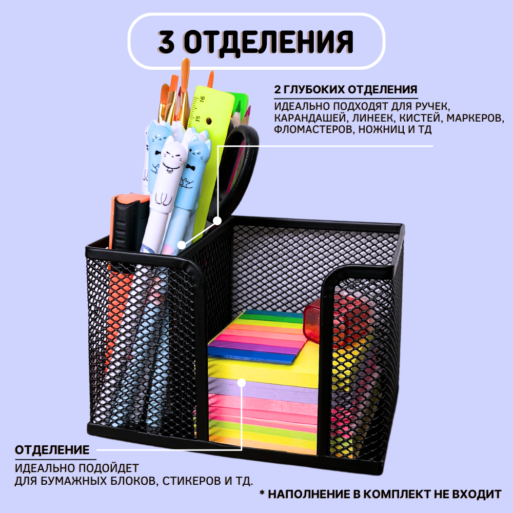 Органайзер подставка для канцелярии, ручек и карандашей настольный, черный