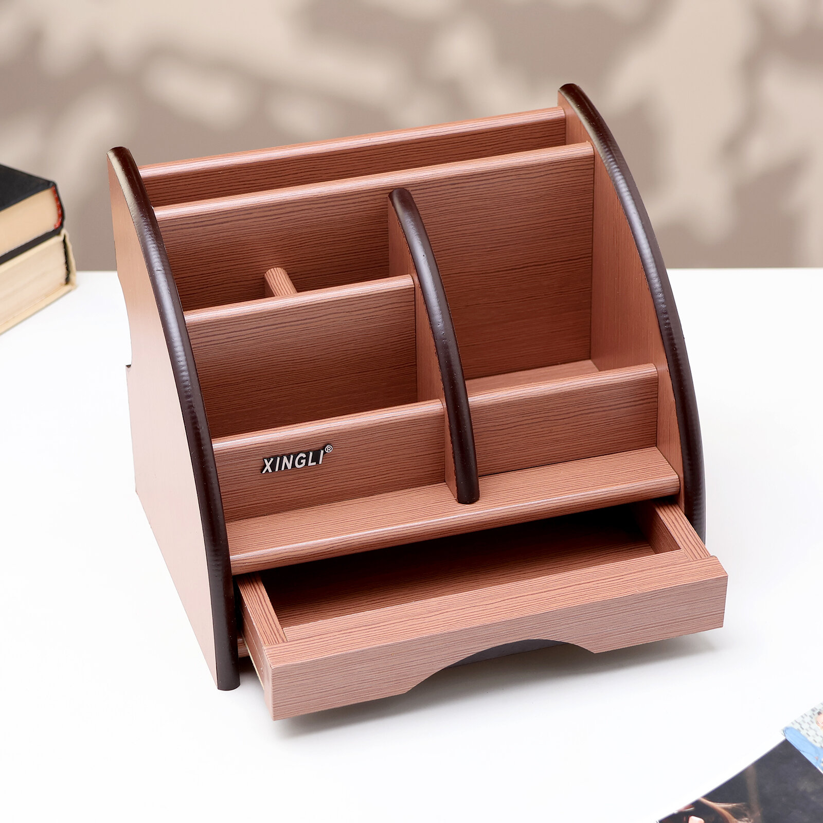 Органайзер 5 секций, 1 выдвижной ящик, серия Ясень шимо темный с кантом темным, 16*20,5