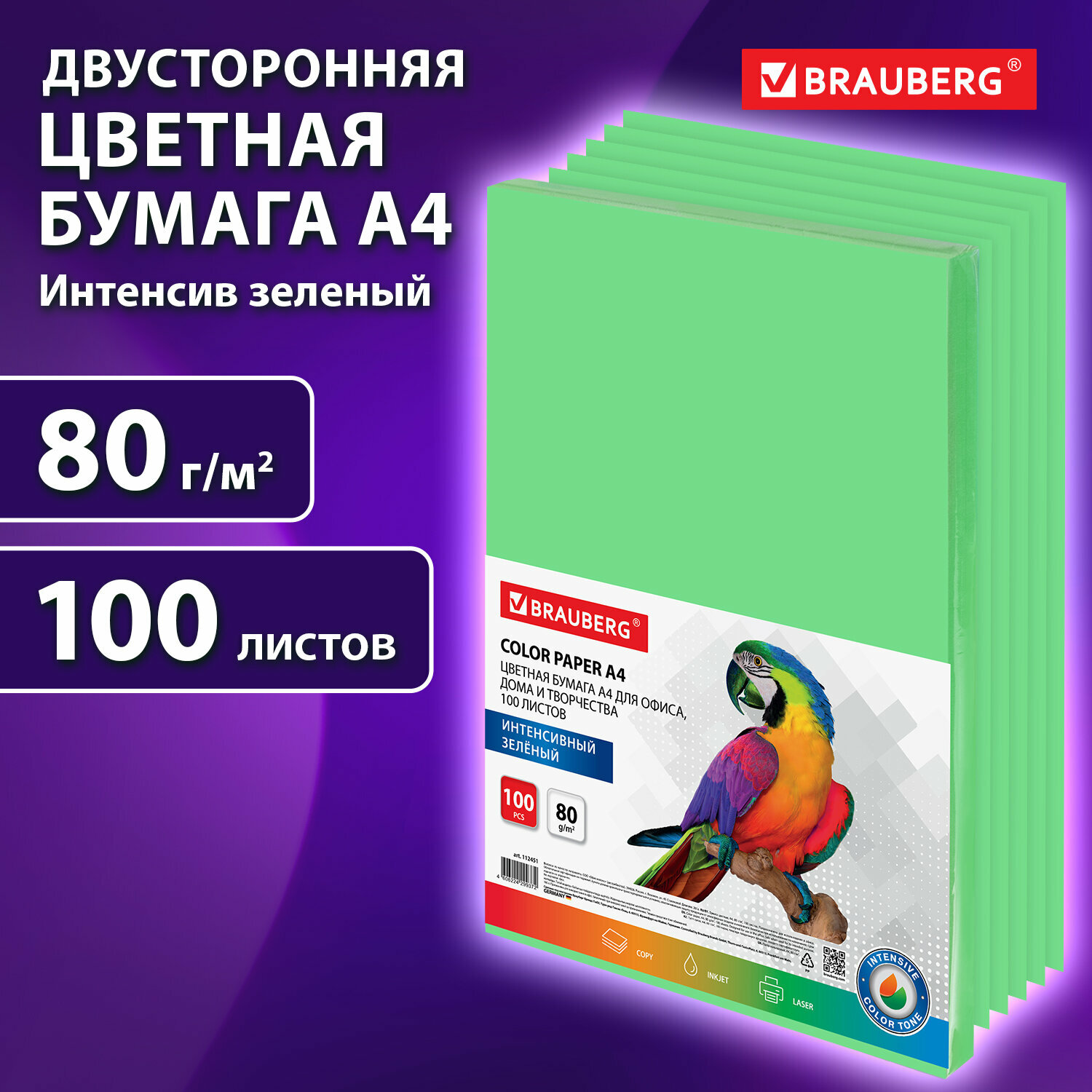 Купить Бумага BRAUBERG 112451 зеленый [A4, 80 г/м², листов - 100]