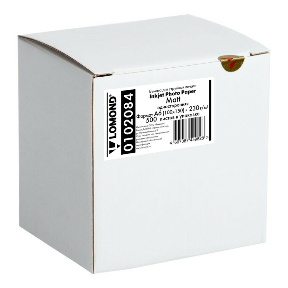 Фотобумага матовая, 10х15 см, 230 г/м2, односторонняя, 500 листов, LOMOND, 0102084