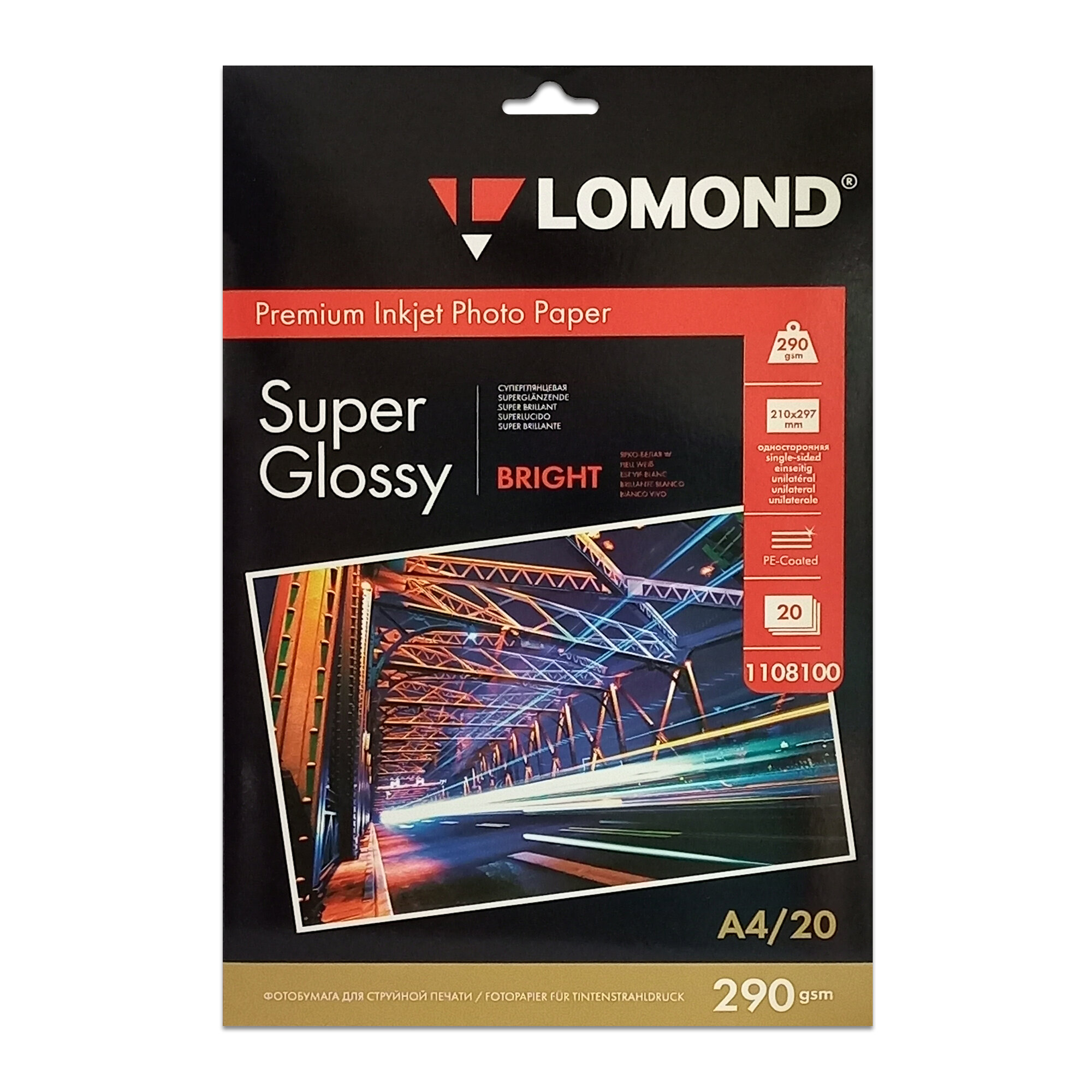 Купить Lomond 1108100 (Super Glossy Bright)-односторонняя,Суперглянцевая ,ярко-белая A4 290g/m, 20 лист.