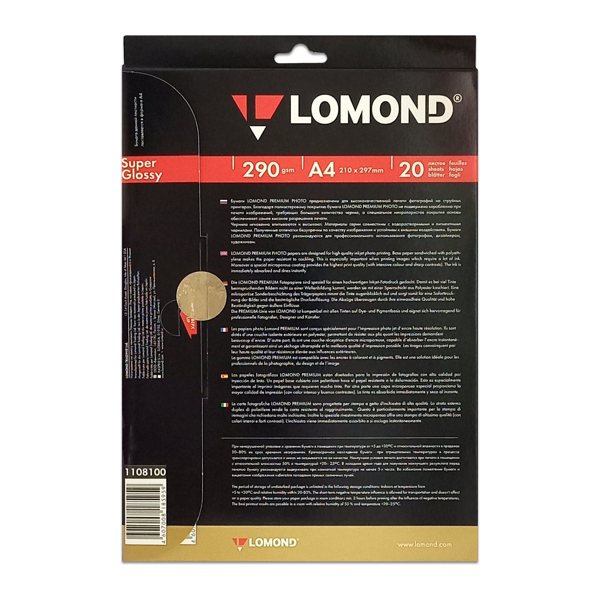 Lomond 1108100 (Super Glossy Bright)-односторонняя,Суперглянцевая ,ярко-белая A4 290g/m, 20 лист. интересное: