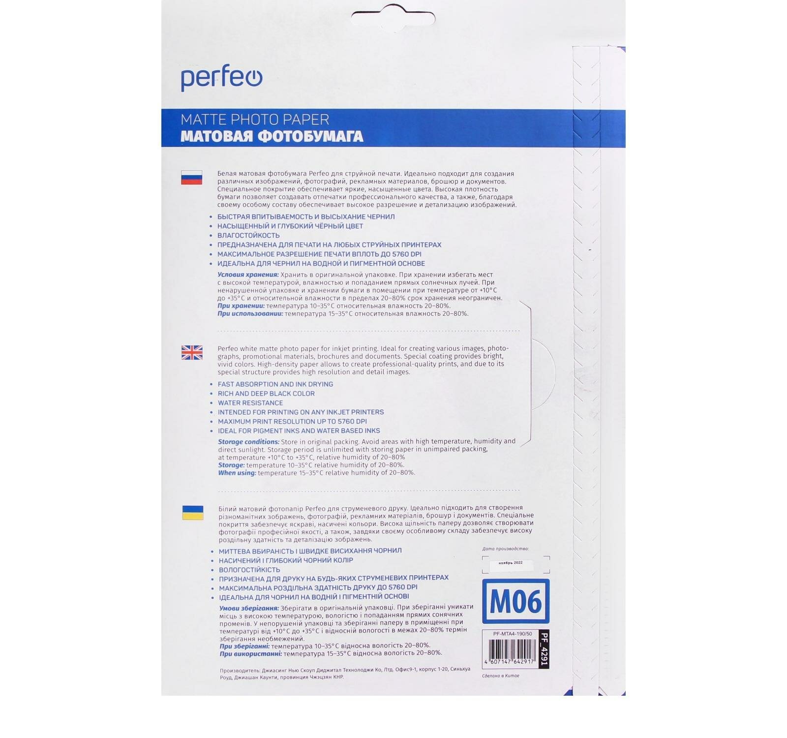Фотобумага PERFEO PF-MTA4-190/50 A4 190 г/м2 матовая 50л, белый