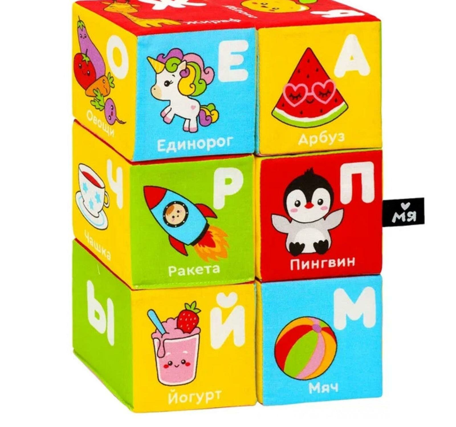 Мягкая игрушка кубики Азбука с картинками - Мяшечки