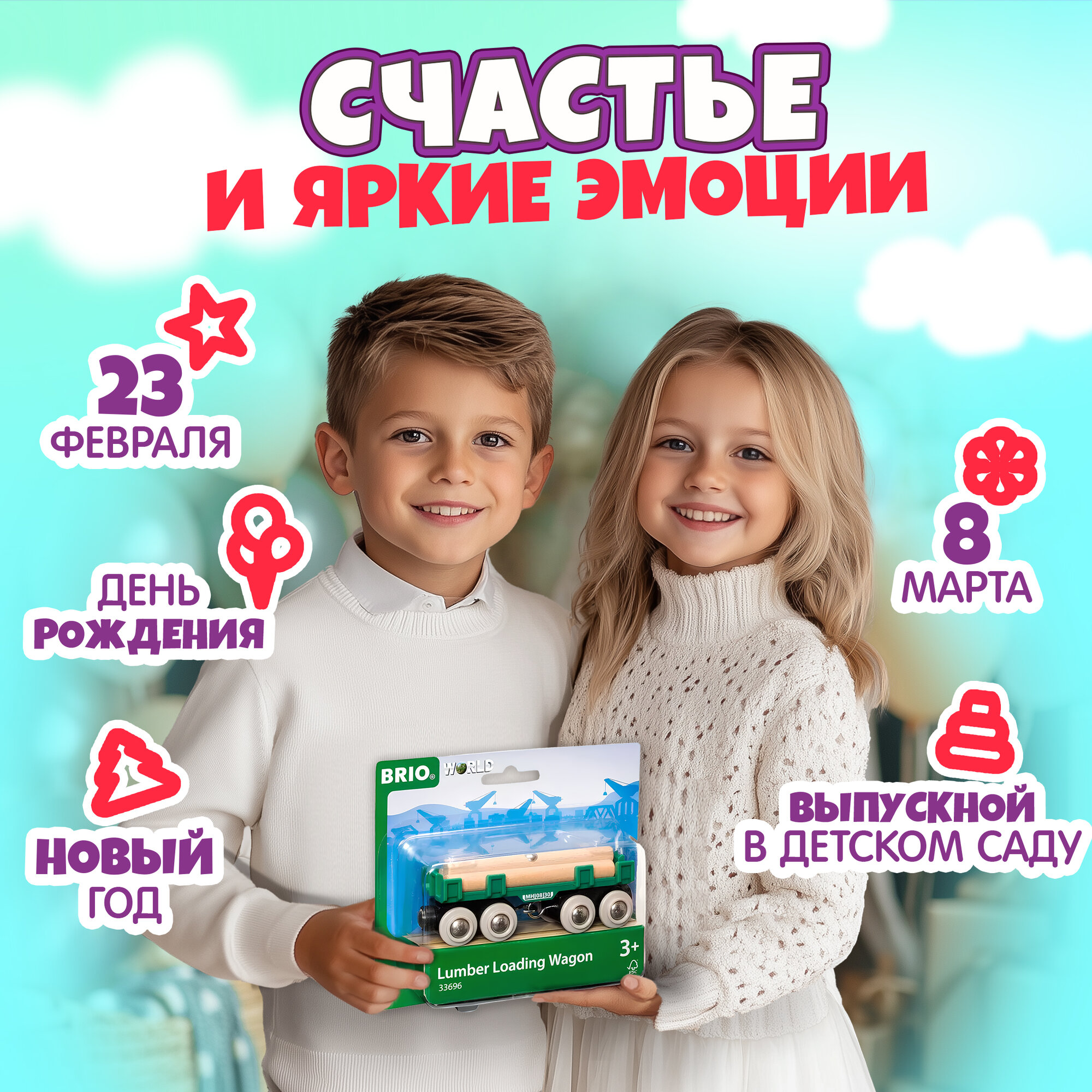 BRIO Вагон с брёвнами деревянной железной дороги брио 33696 интересное: