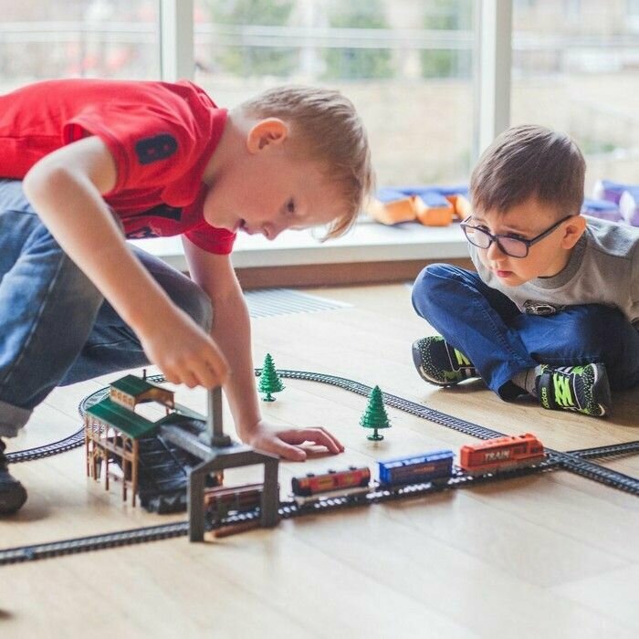 Автоград Железная дорога «Экспресс», 92 детали, работает от батареек, подходит для деревянных железных дорог