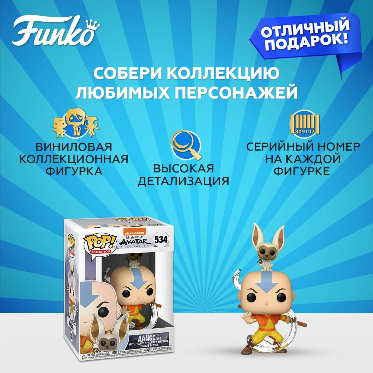 Фигурка Funko POP! Animation Avatar The Last Airbender Aang with Momo/Фанко ПОП по мотивам сериала "Аватар: Легенда об Аанге", Аанг