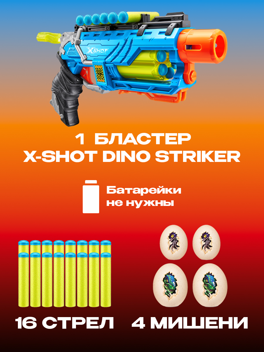 Игровой набор с бластером ZURU X-SHOT Dino Striker с 16 стрелами и 6 мишенями в виде яиц, игрушки для мальчиков, 8+, 4860