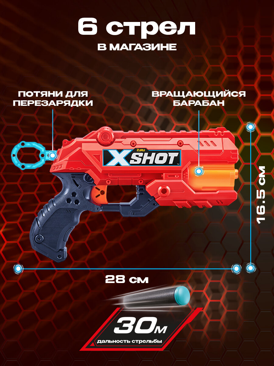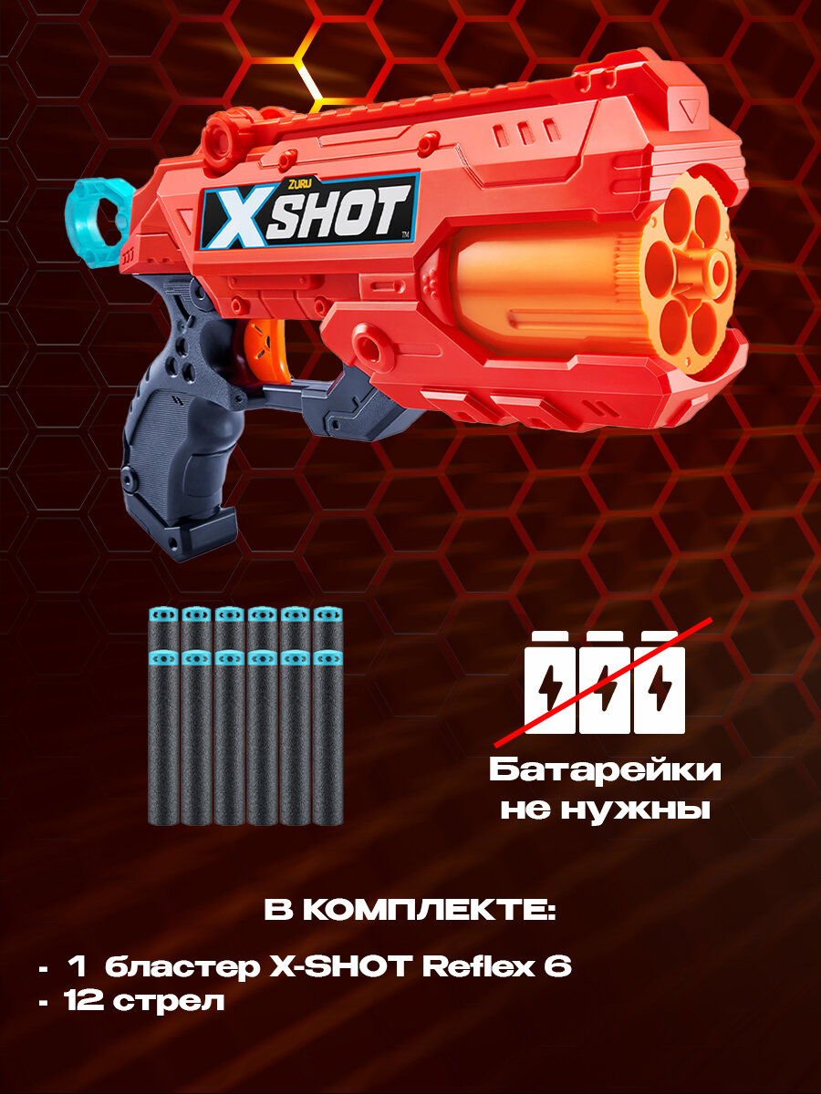 Пистолет с мягкими стрелами (12 шт) ZURU X-SHOT Excel Рефлекс 6, игрушечное оружие, игрушка для мальчика, подходят стрелы нерф, игровой набор, 36433
