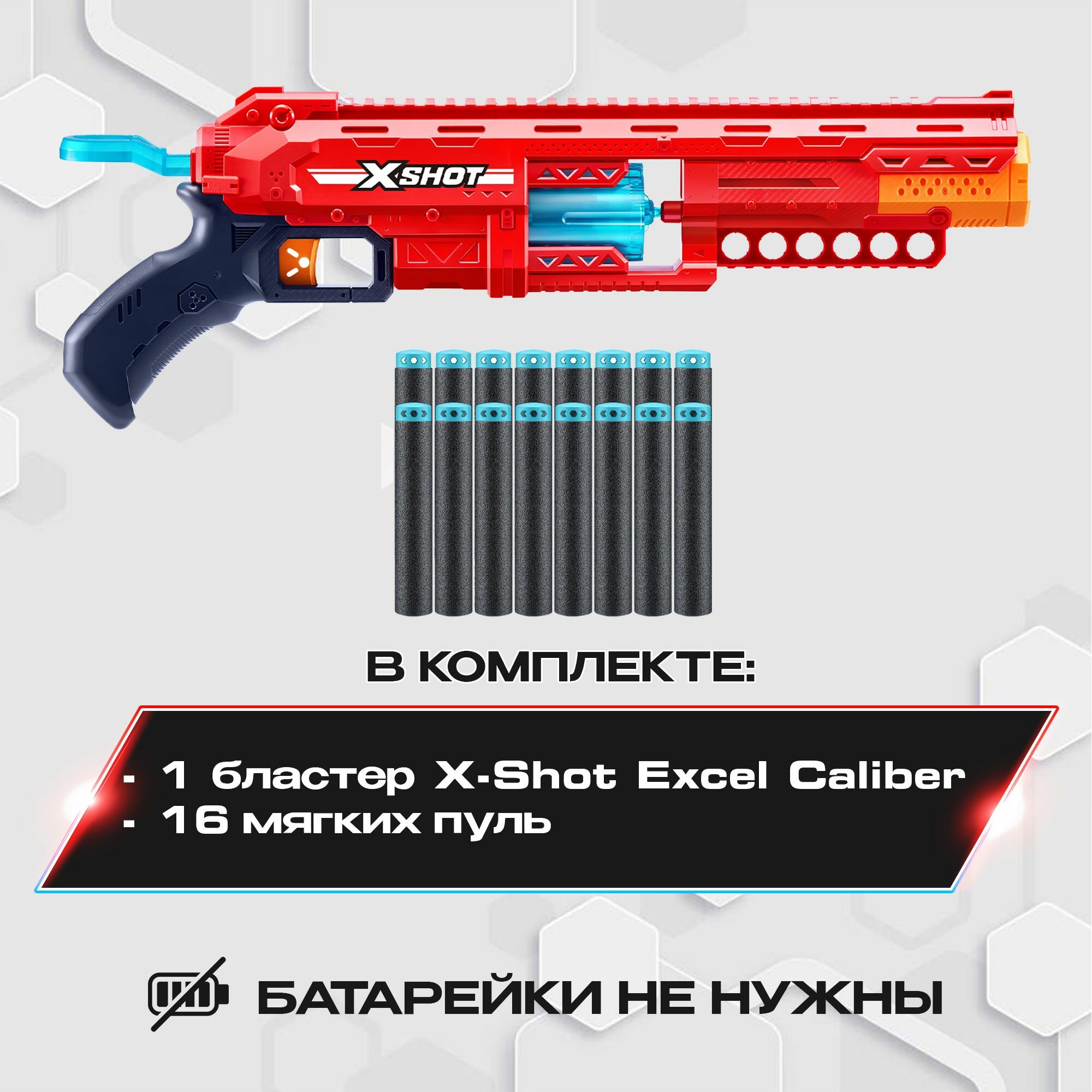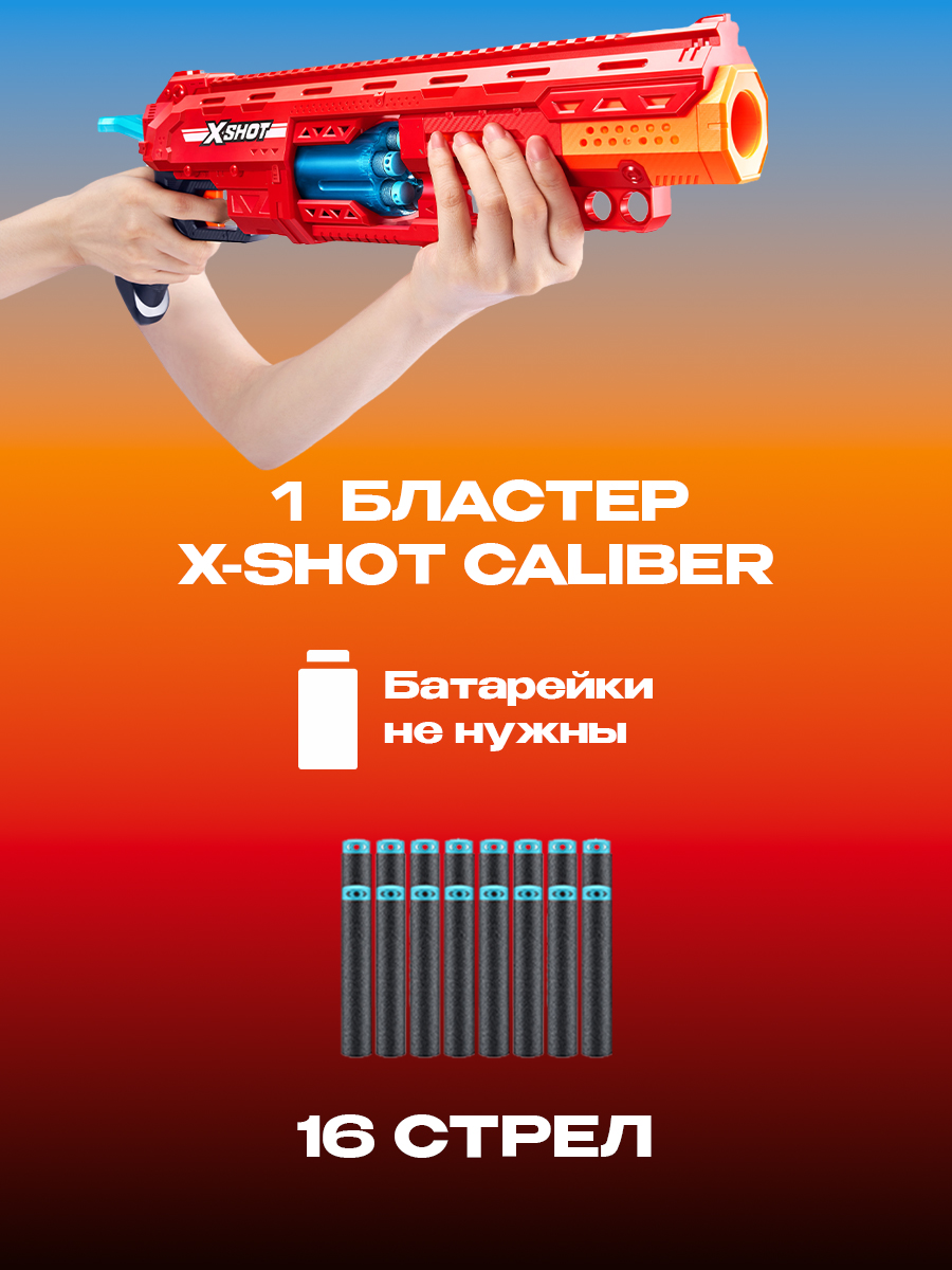 Большой автомат с мягкими пулями (16 шт) ZURU X-SHOT EXCEL CALIBER, 36675 игрушечное оружие, игрушка для мальчика, подходят стрелы нерф, игровой набор