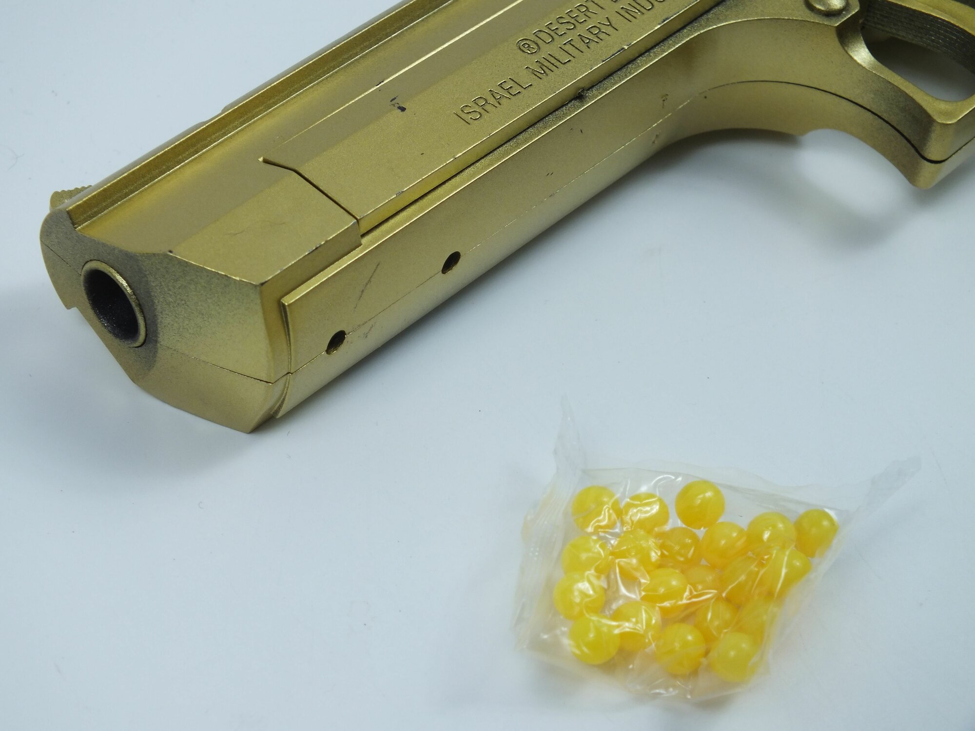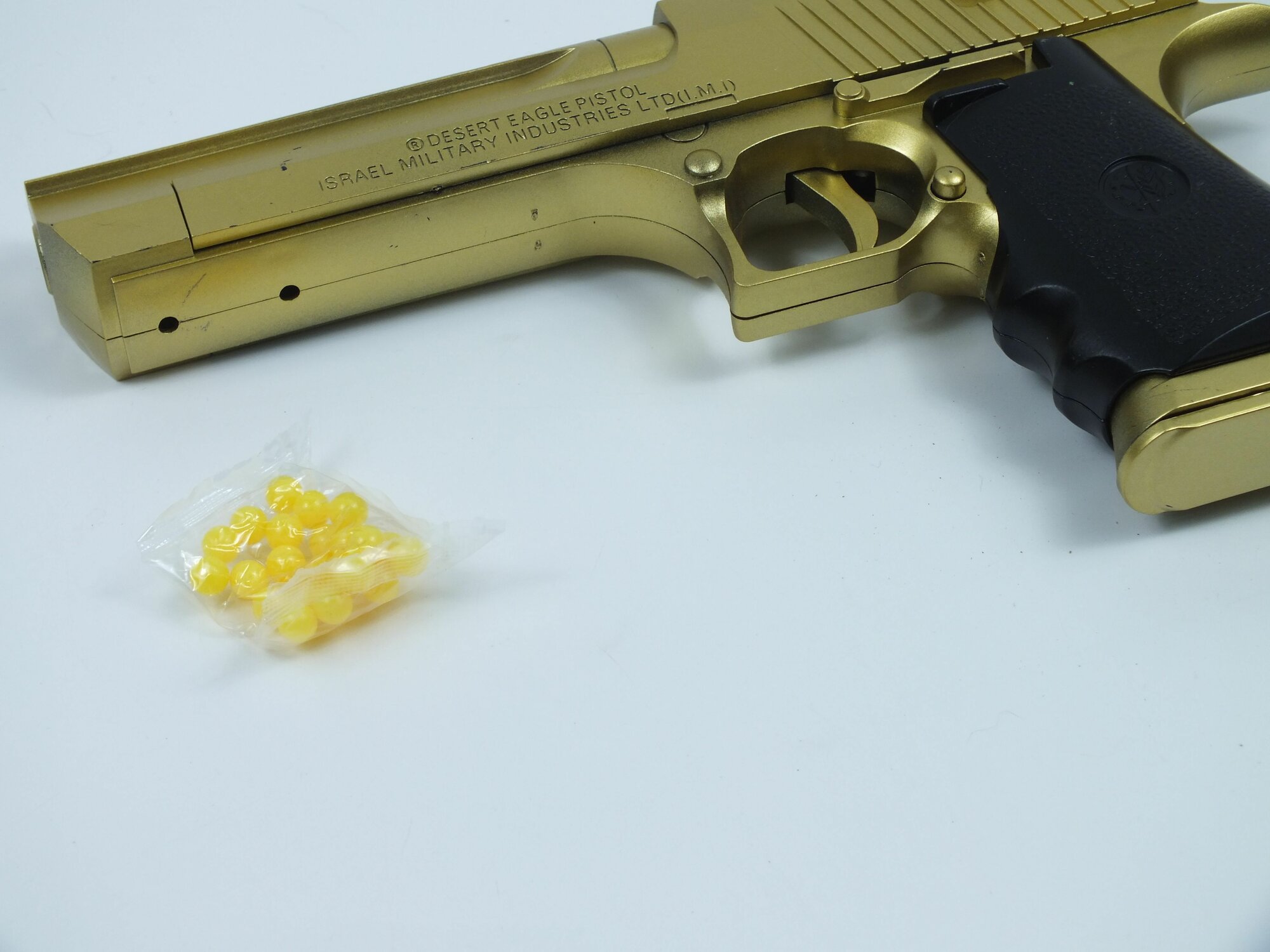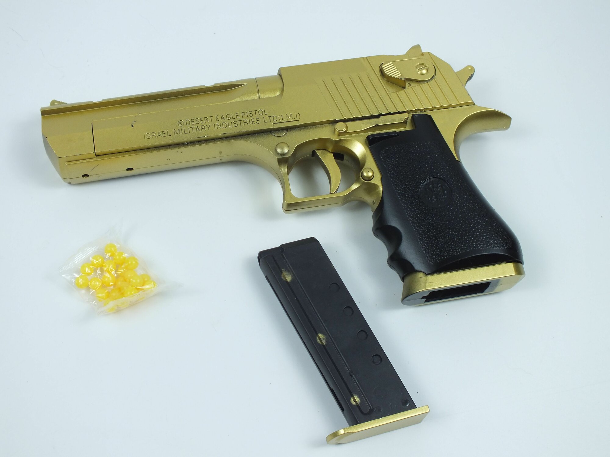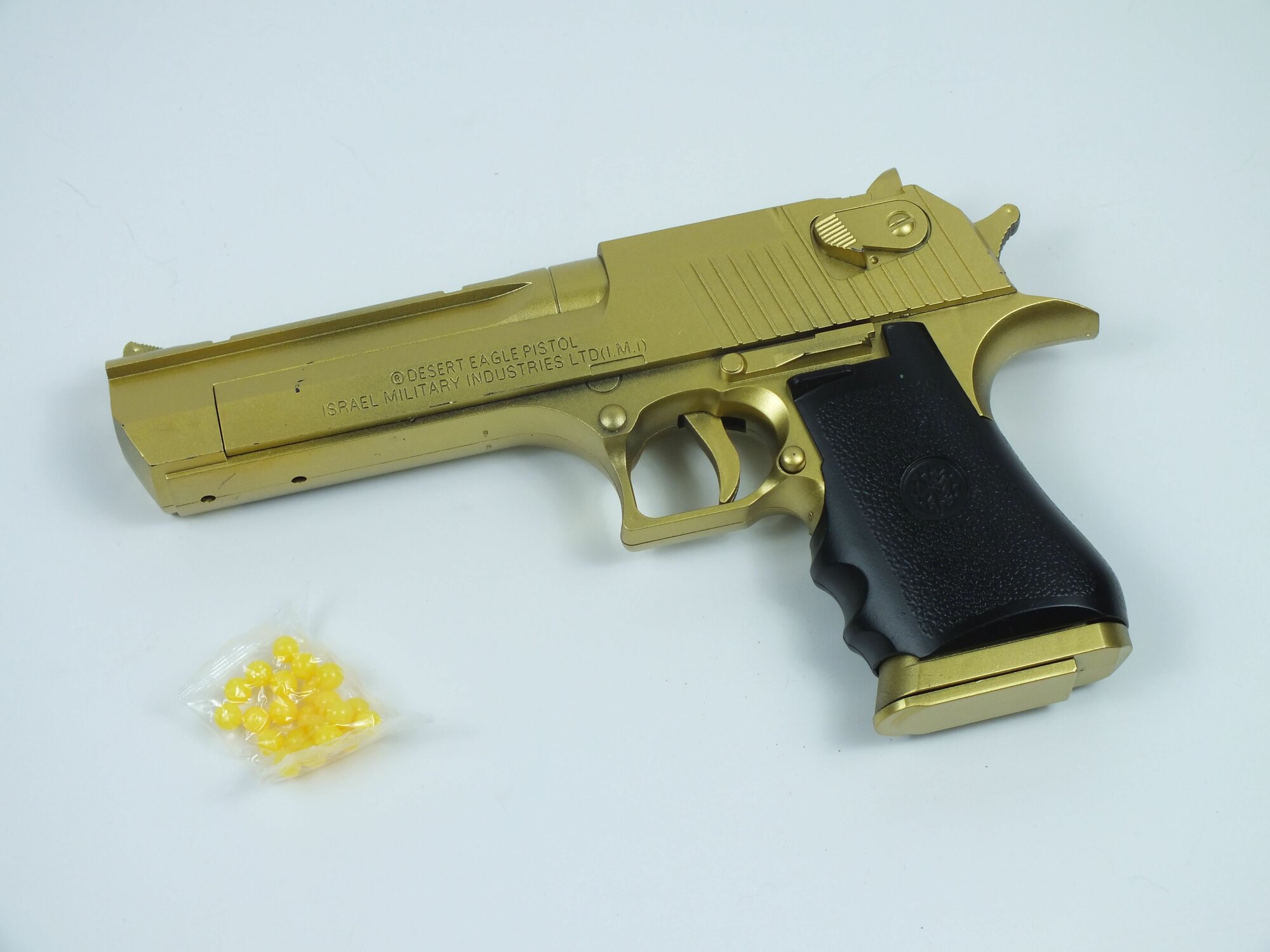 Купить Игрушечный пистолет, с пульками, реалистичный, металл/пластик, золотой цвет, 10см