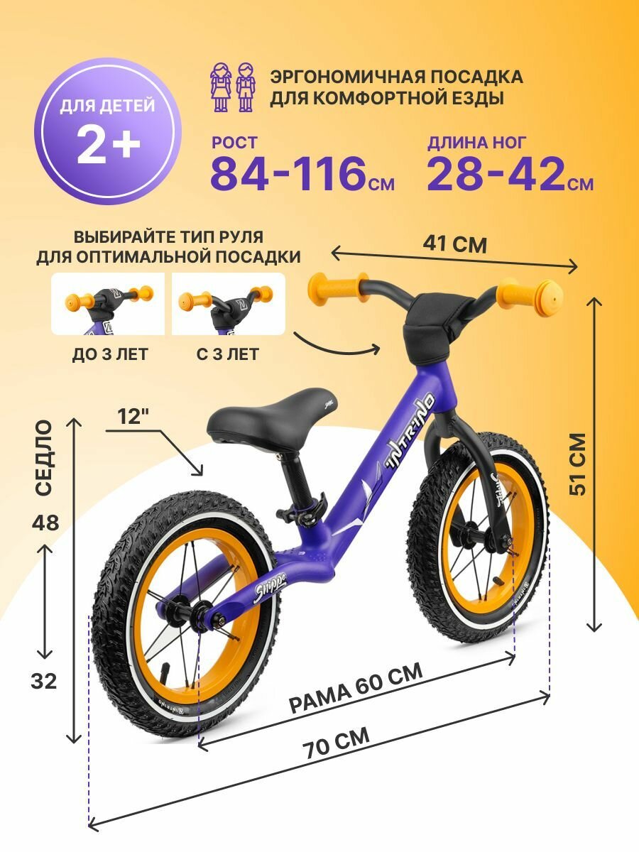 Купить Беговел Intrino Snippo детский 2+ с амортизацией, высокий руль, фиолетовый