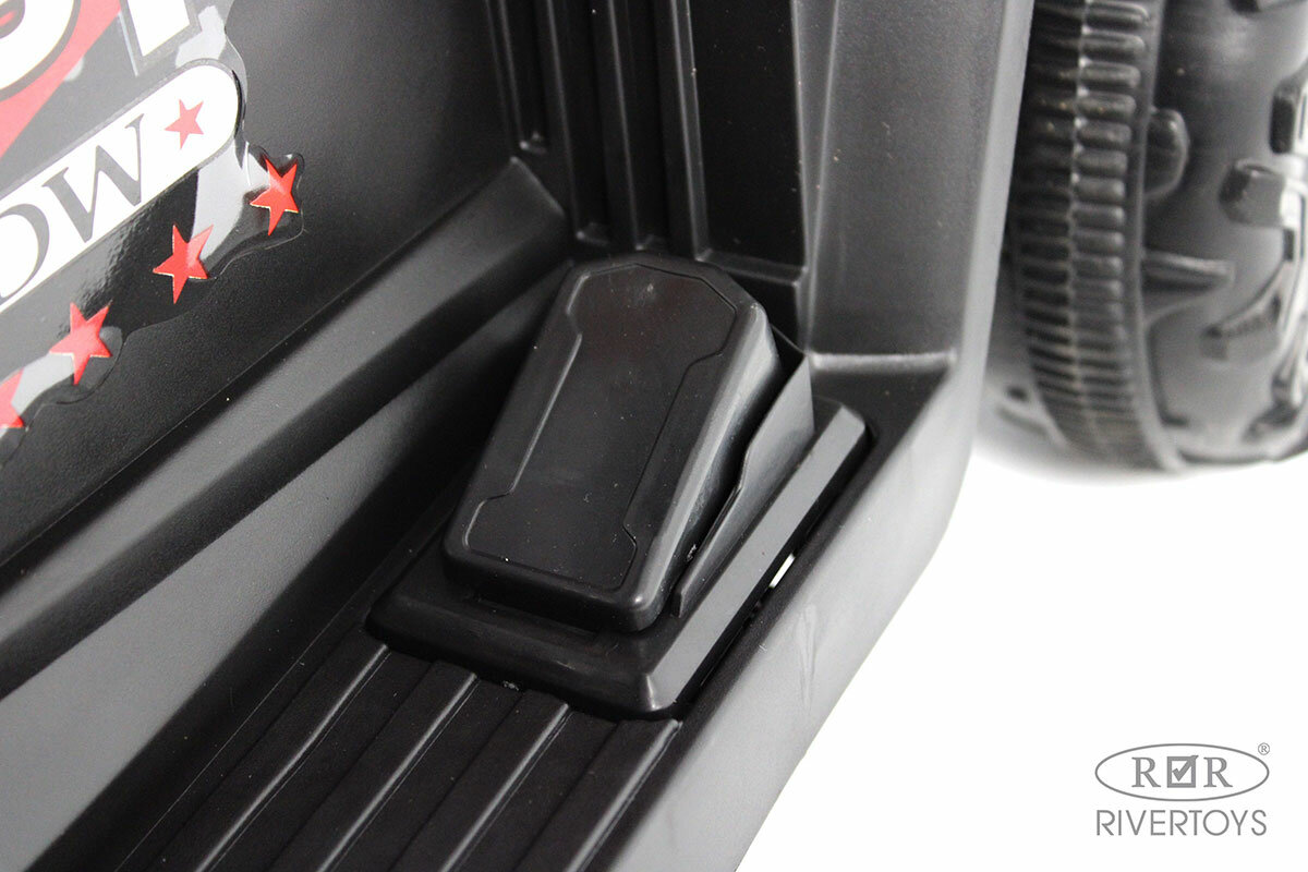 | Дополнительная информация | Световые эффекты: передние огни фар. Звуковые эффекты: заводские мелодии, звук клаксона. Пульт управления: индивидуальный (настраивается по Bluetooth), от батареек 2 шт 1.5v AAА Доп.функции: откидная крыша, фиксирующаяся в двух положениях, боковые фиксирующие ручки. Колеса: каучуковые. Скорость: вперед/назад+ управление родительской ручкой. Сидение: эко-кожа. Включение: кнопка. Движение: педаль газа. Медиа-панель: USB-вход, AUX-вход, индикатор заряда батареи. |