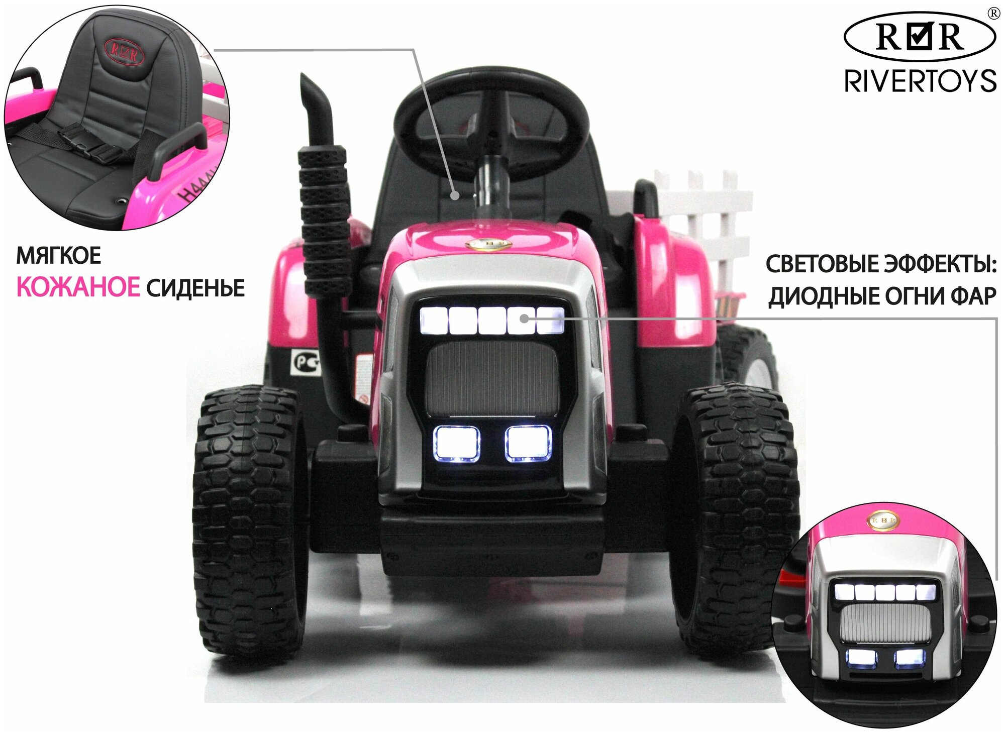 Детский электромобиль трактор Rivertoys H444HH розовый с дистанционным управлением