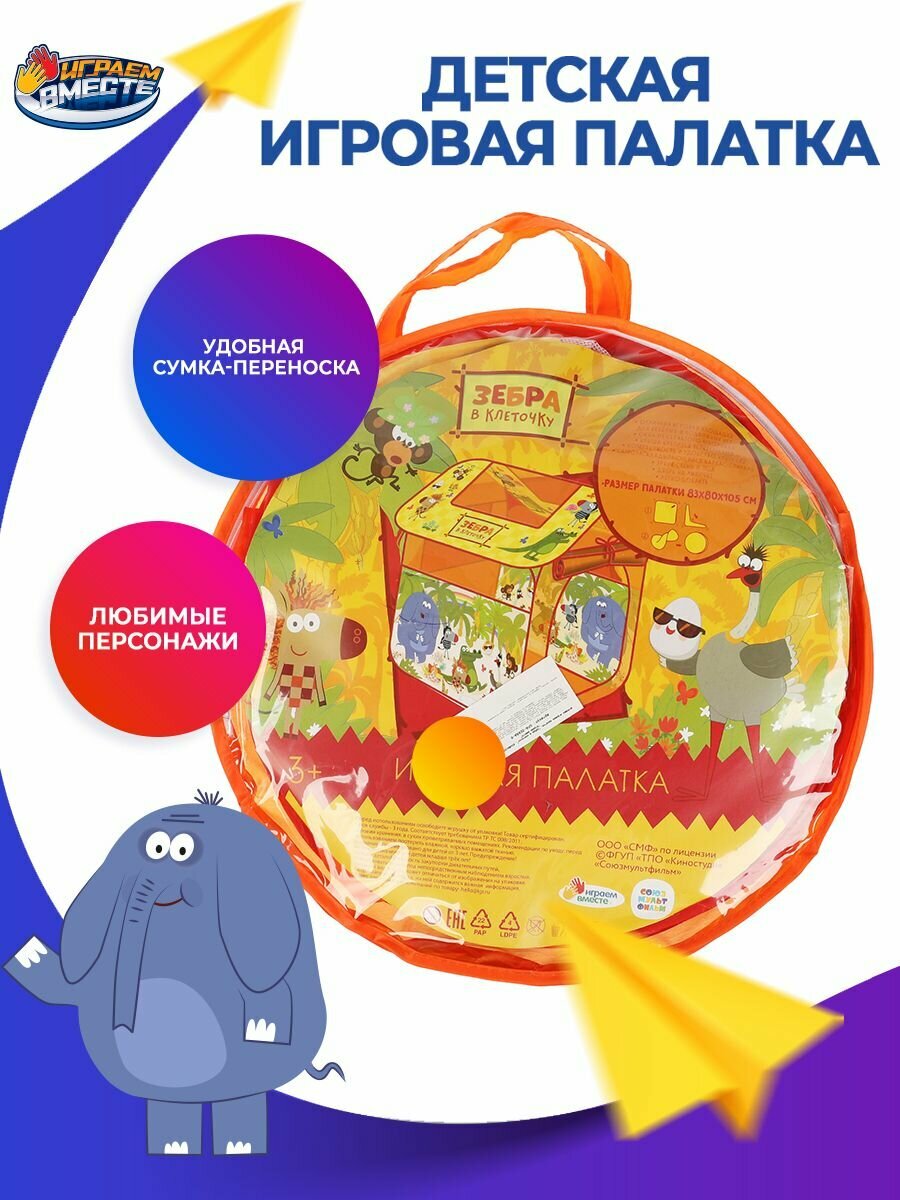 Купить Палатка детская игровая Играем Вместе Зебра в клеточку, 83х80х105 см, в сумке
