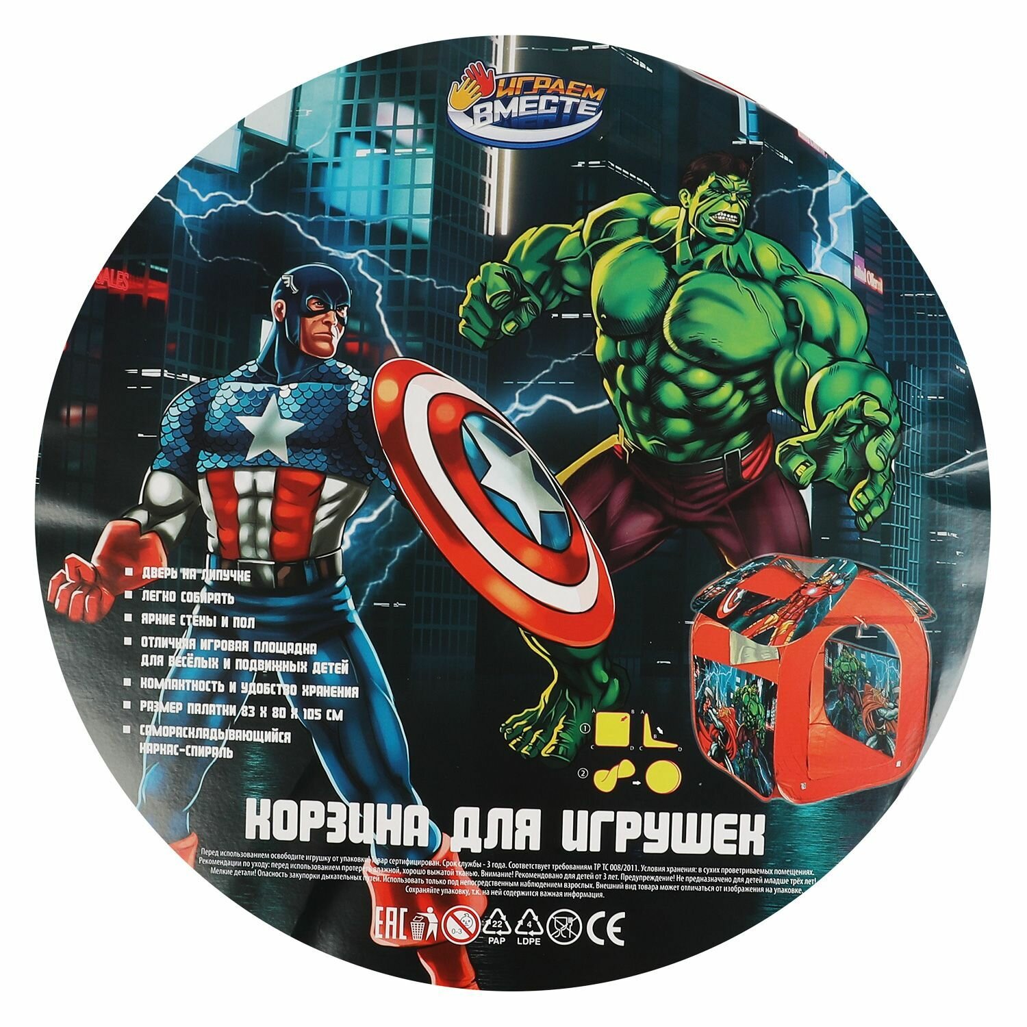 СохранитьПалатка детская игровая "Супергерои" размер в собранном виде 83*80*105см, в сумке интересное: