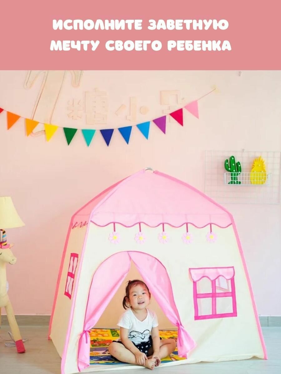 Игровая палатка для детей. Домик с окном. Цвет: Бежевый, Розовый интересное:
