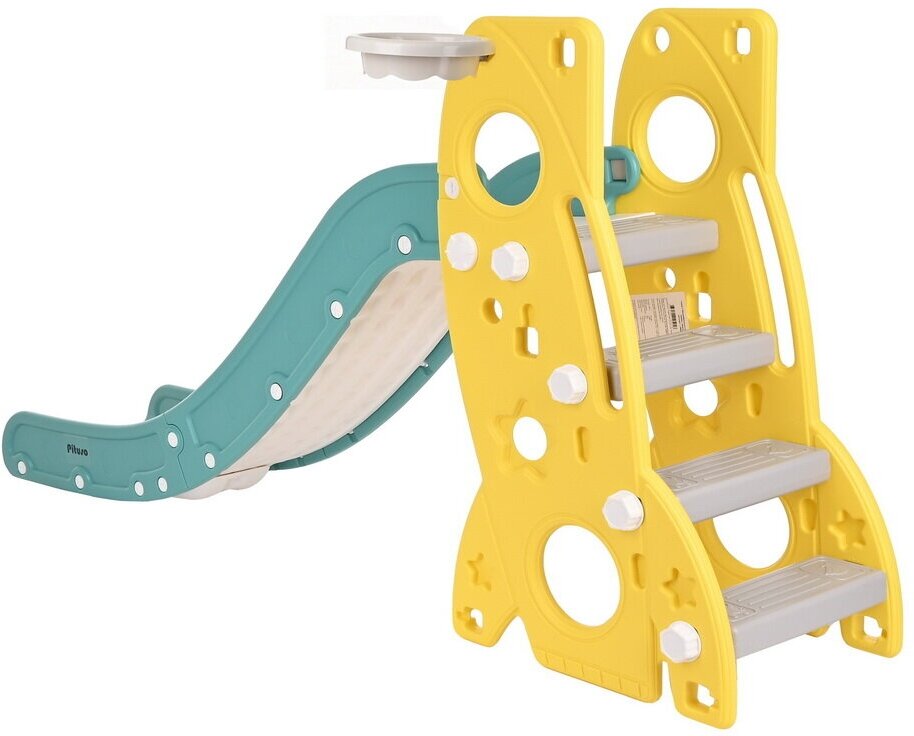 Купить Горка детская Pituso Шаттл с баскетбольным кольцом и мячом, 184х44х95 см, желтый