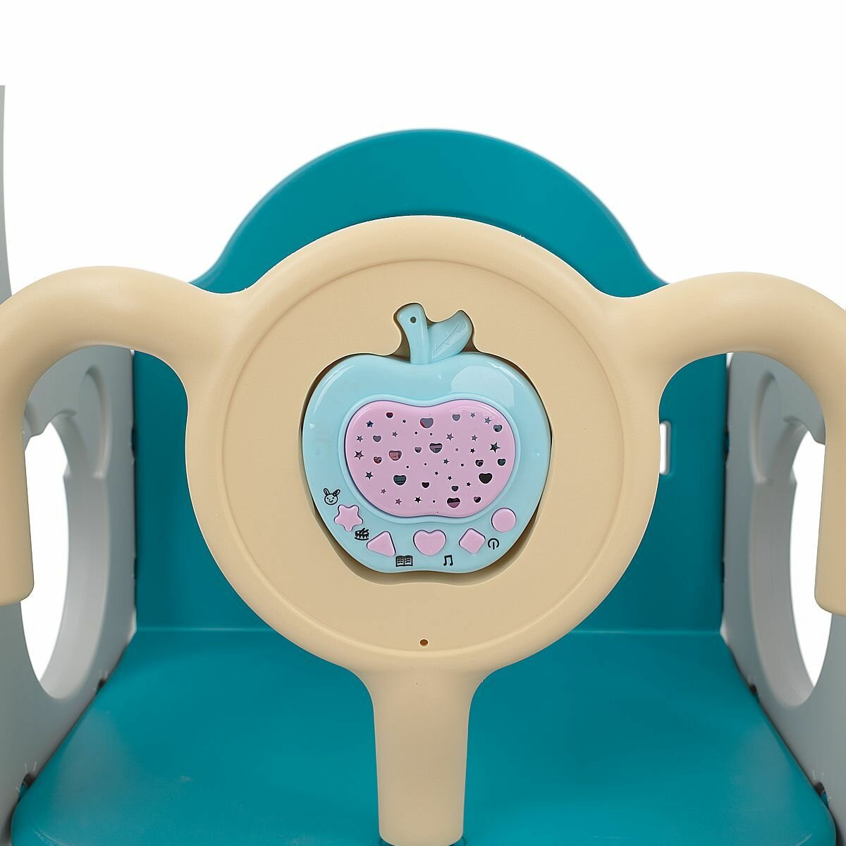 | Комплектация | пластиковая горка, качели, лесенка, кольцо баскетбольное (1 шт.), ворота, баскетбольный мяч - 1шт. (d=15 см); футбольный мяч – 1 шт. (d=15 см), музыкальный элемент с подсветкой |