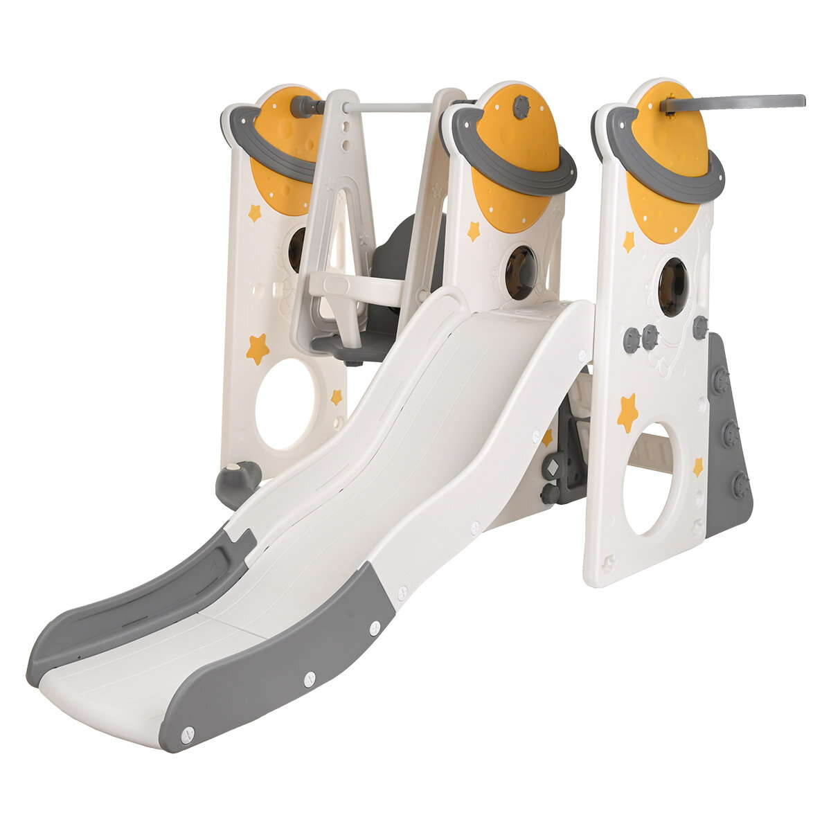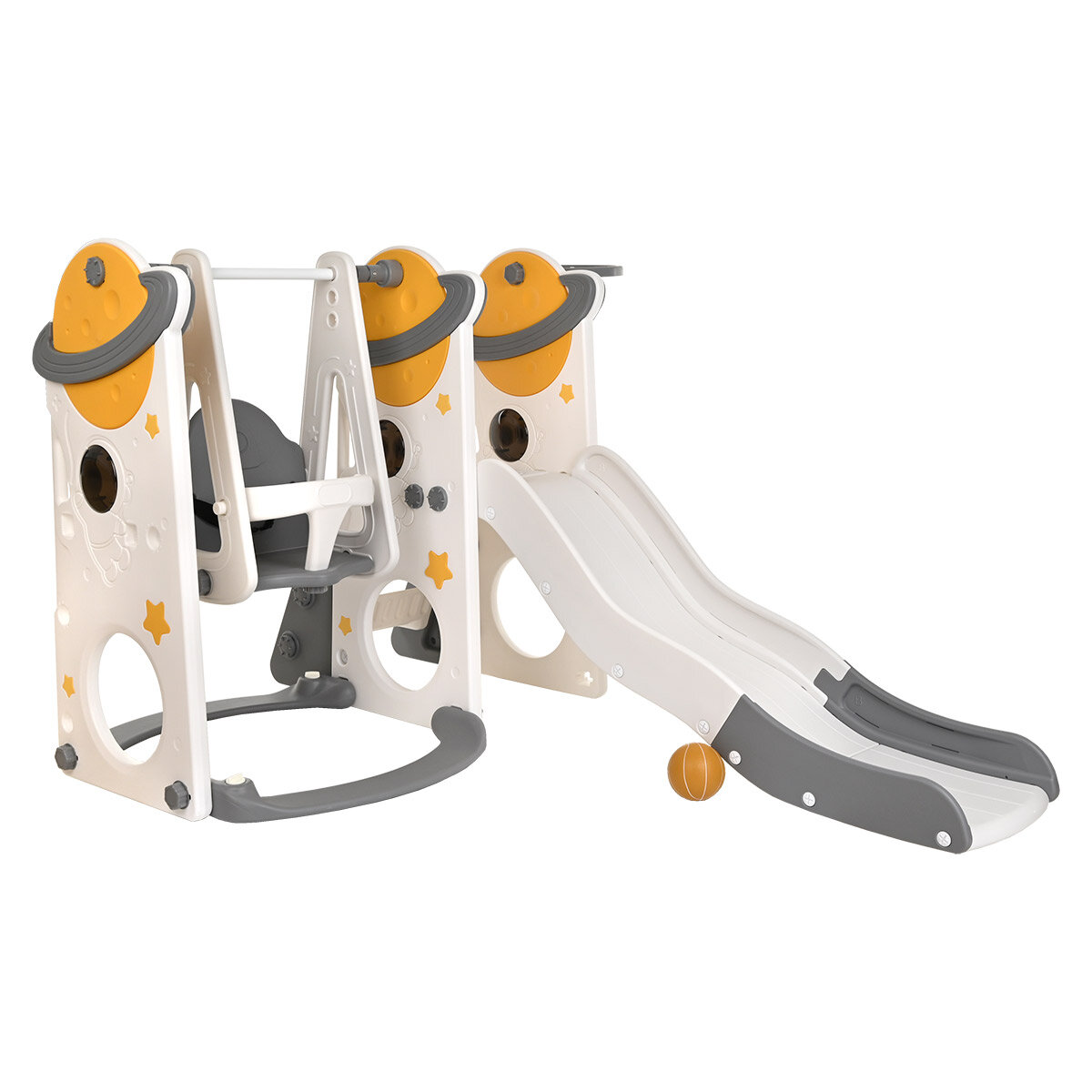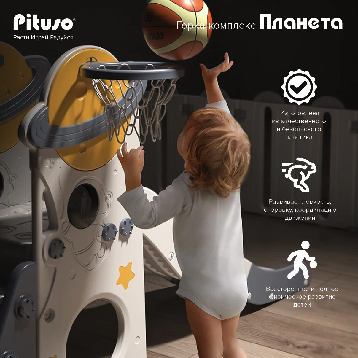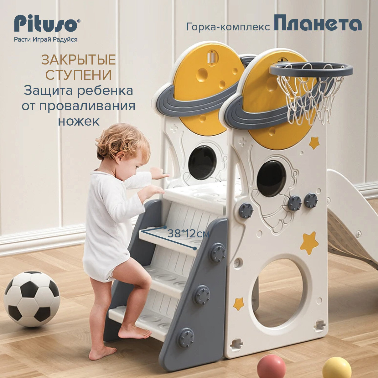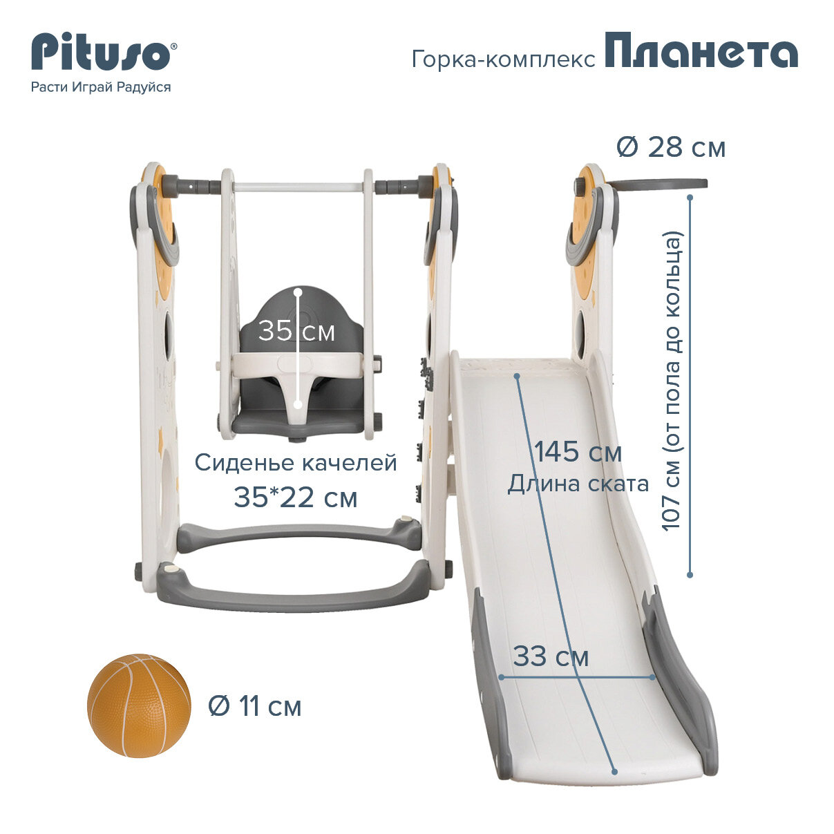 Купить Горка-комплекс Pituso Планета, горка, качели, баскетбольное кольцо, Серый/Белый